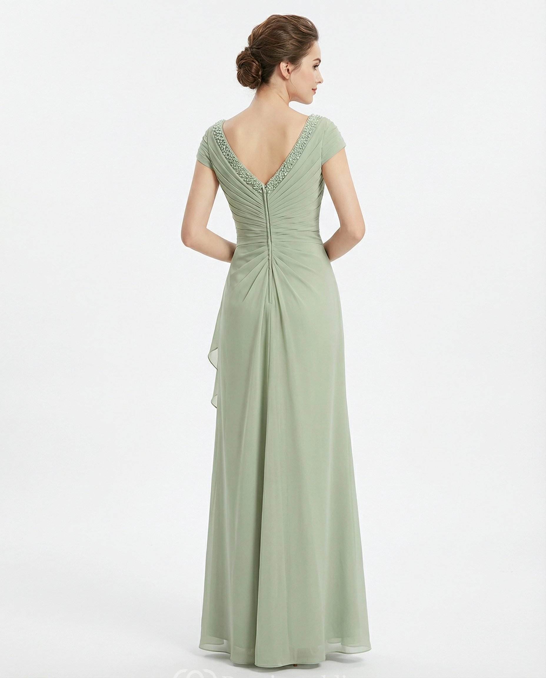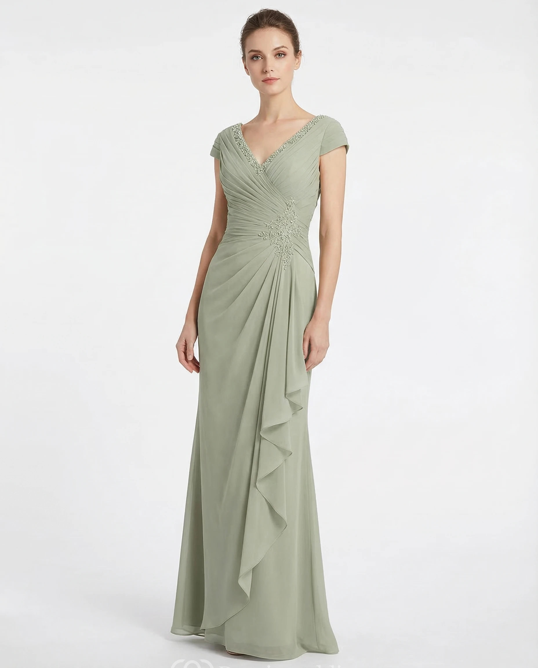 Draped Cap Sleeve V-Neck Chiffon Formal Gown