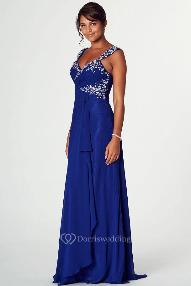 Draped Sleeveless Strapped Chiffon Prom Dress