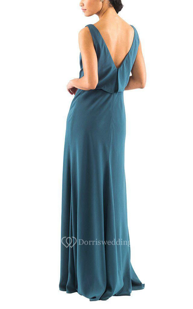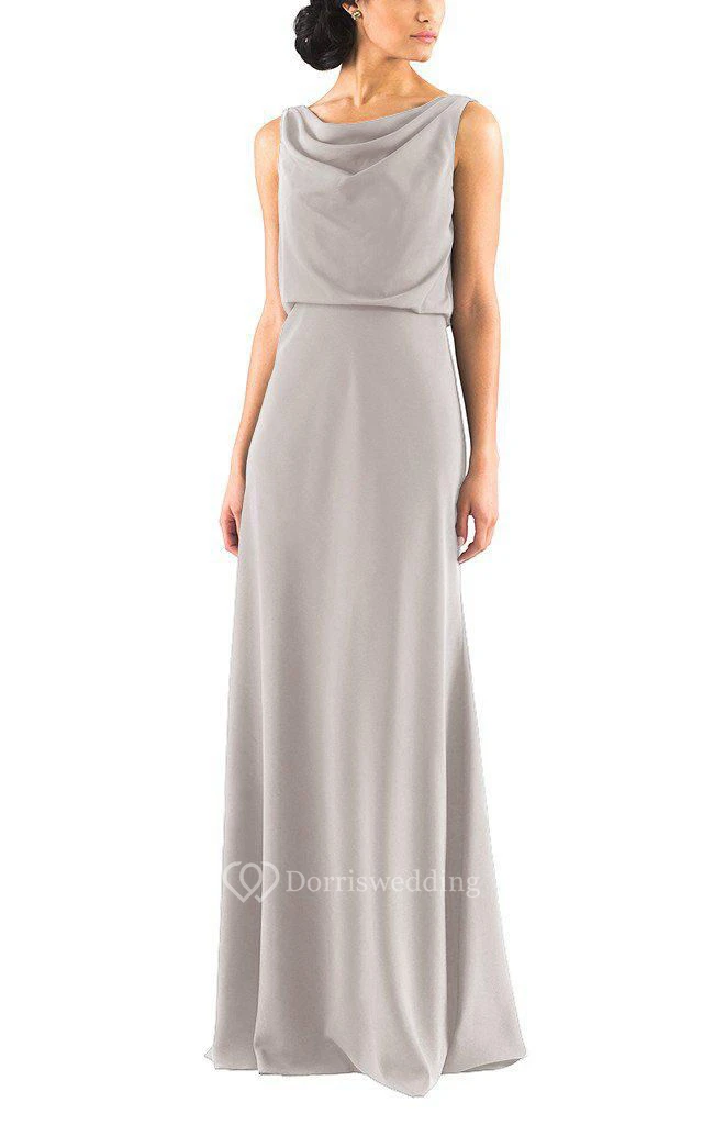 Drapped Sleeveless Long Chiffon Dress