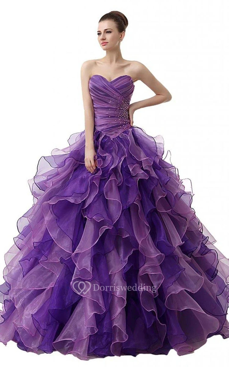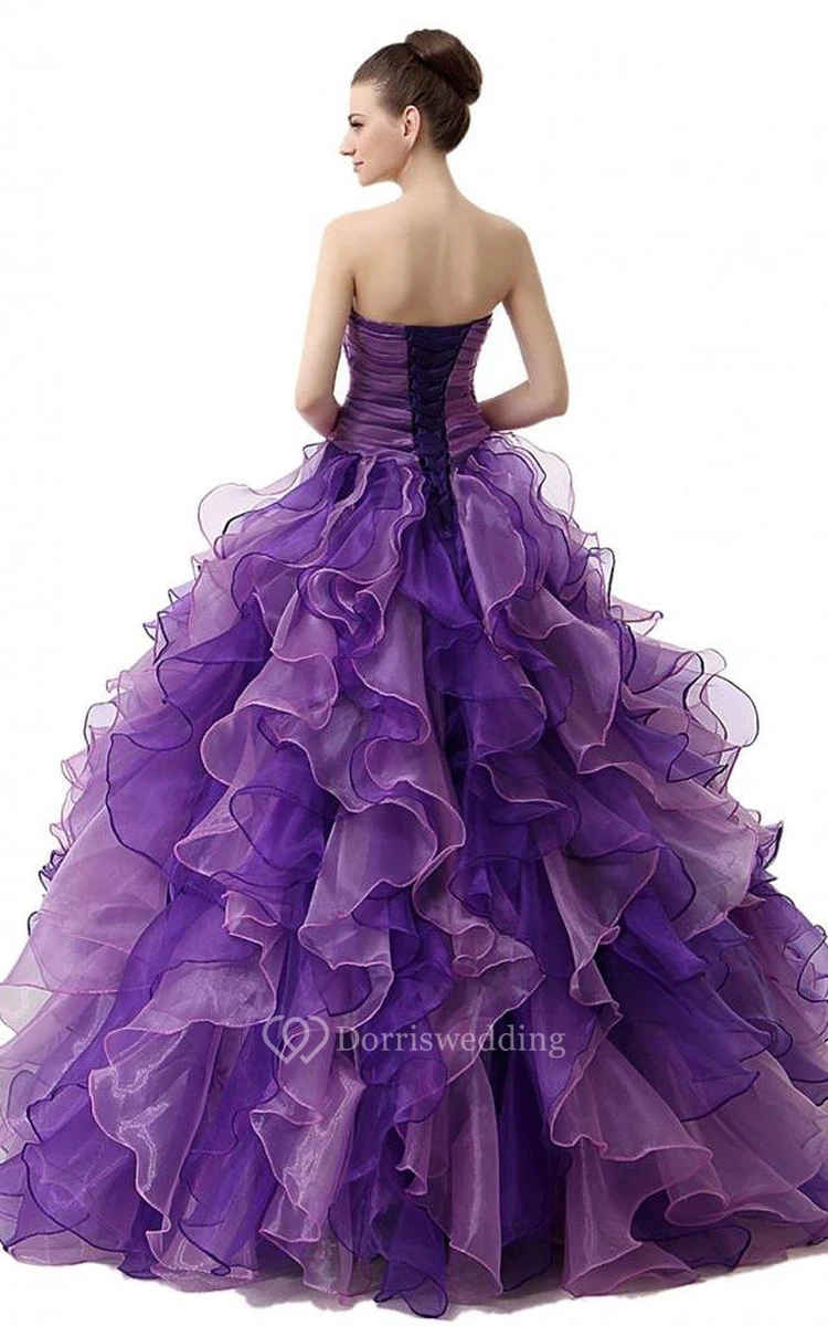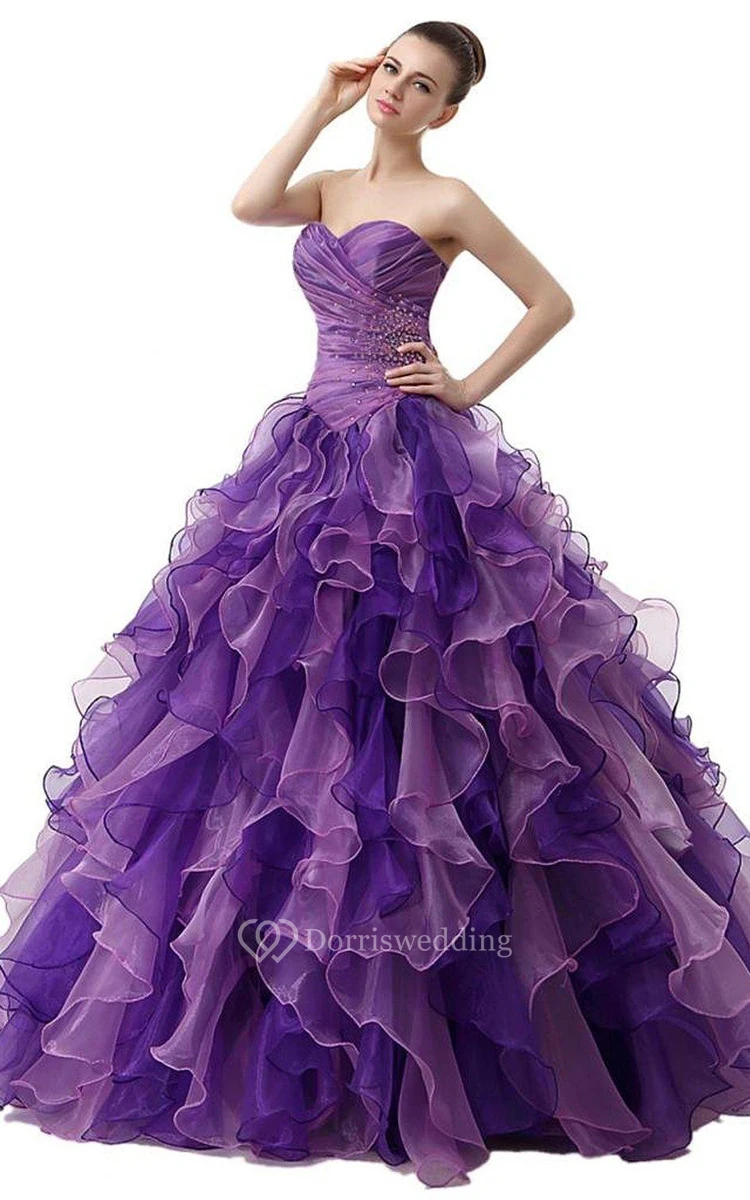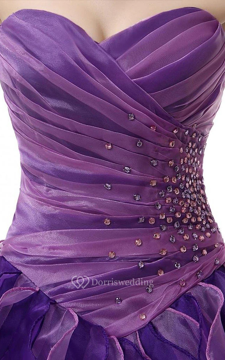 Dreaming Sweetheart Ruched Ball Gown With Cascading Ruffles and Rhinestones
