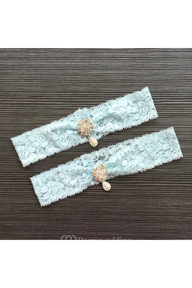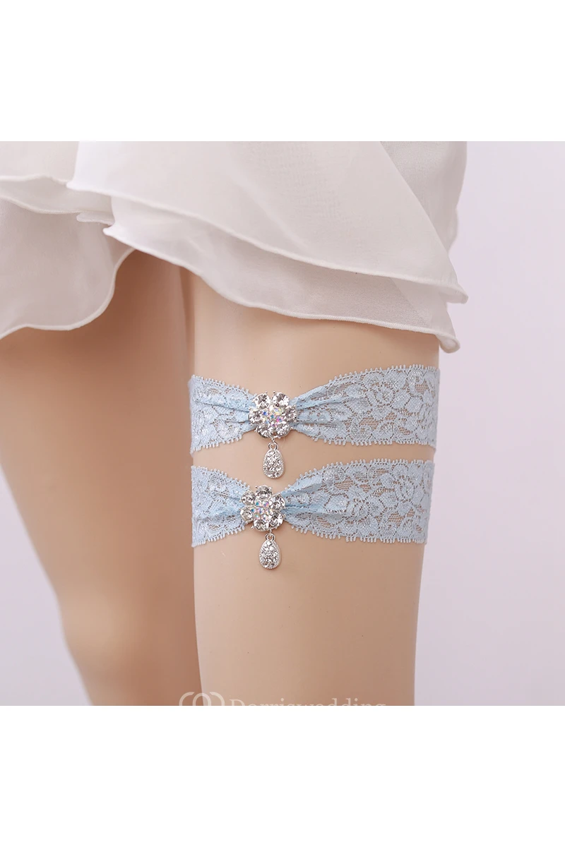 Drop Shape Diamond Lace Two Piece Elastic Bridal Garter Within 16-23inch