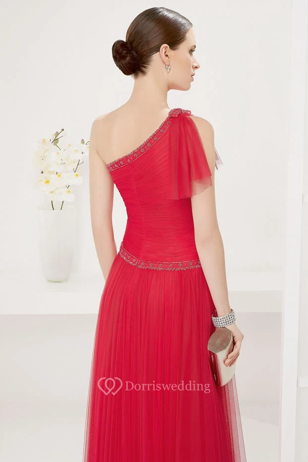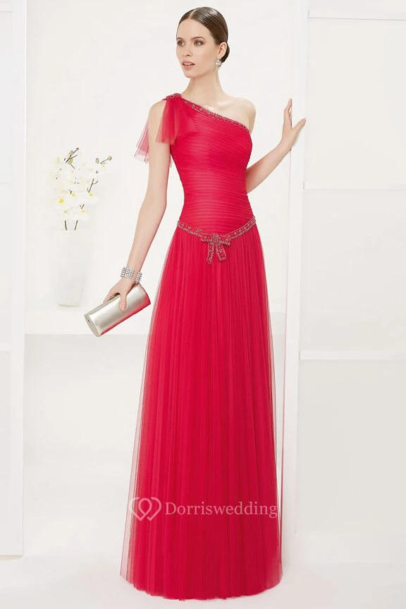 Drop Waist Asymmetric Tulle Long Prom Dress With Crystal Neckline And Waist