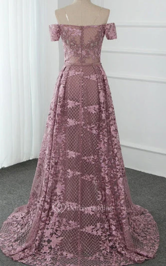 Elegant A Line Lace Brush Train Sleeveless Zipper Evening Dress with Beading