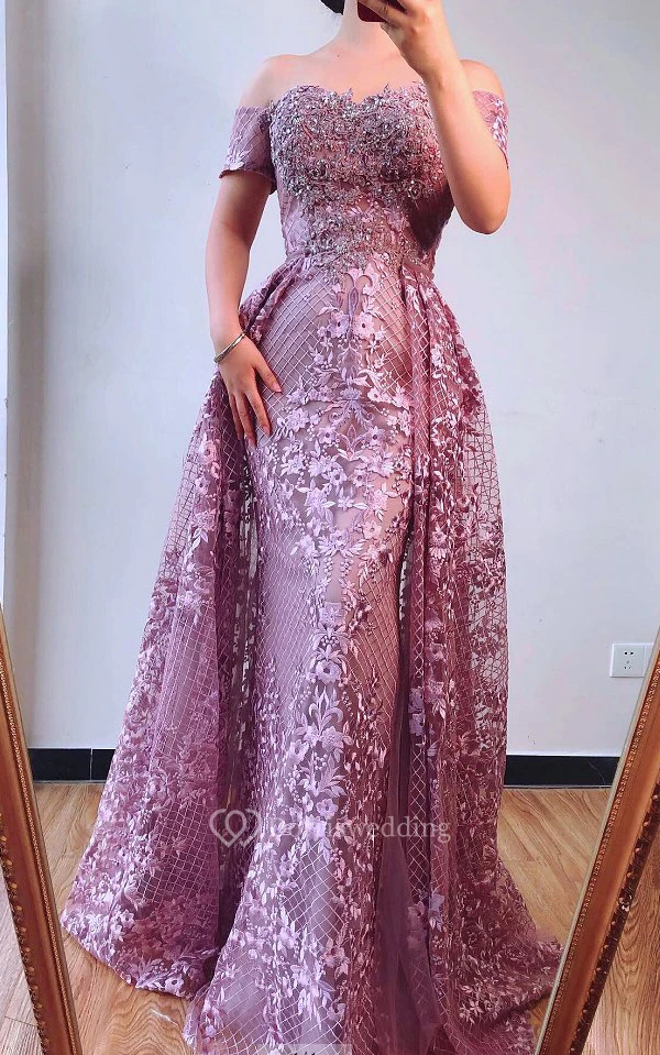 • Hemline/Train: Floor-length, Sweep/Brush Train