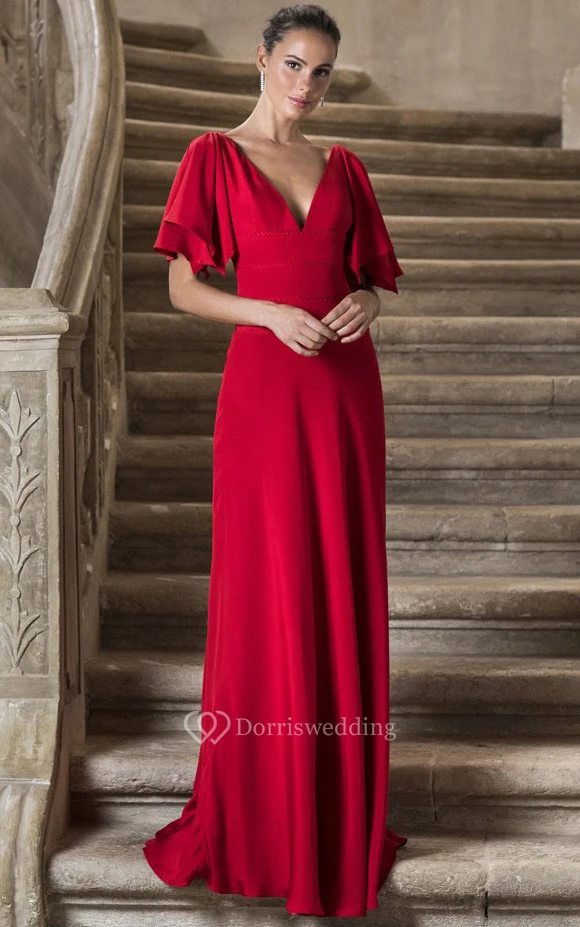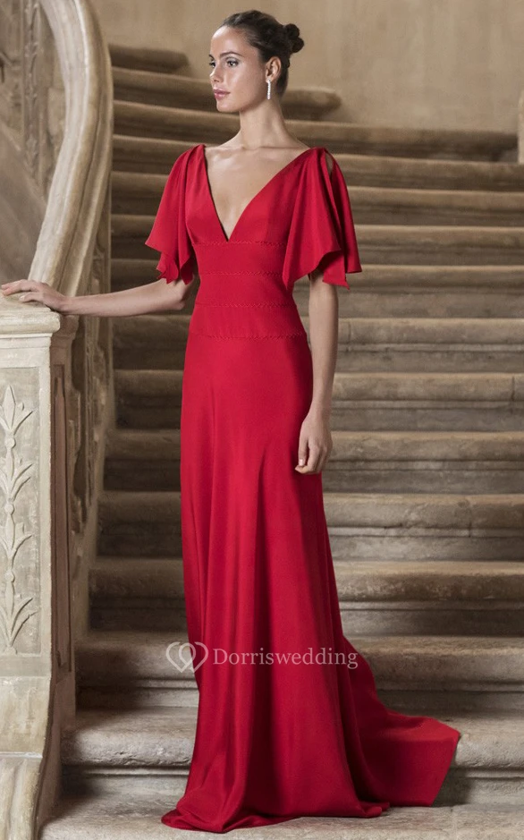 Elegant A Line Satin V-neck Floor-length Prom Dress