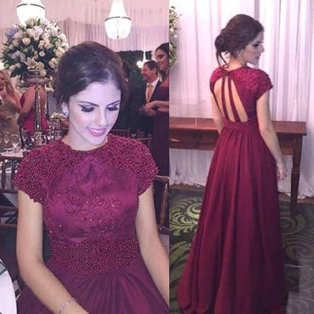 Elegant Beadings Chiffon Prom Dress Cap Sleeve