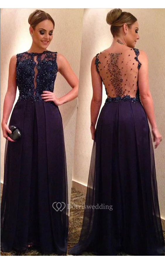 Elegant Beadings Lace Appliques Evening Dress A-line Floor-length