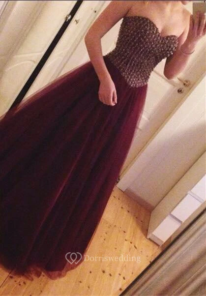 Elegant Beadings Tulle Princess Evening Dress Sweep Train Sleeveless