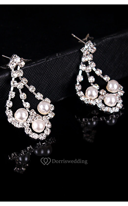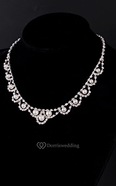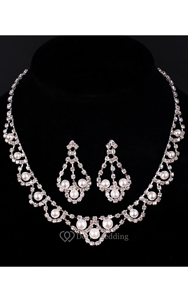 Elegant Bridal Rhinestone and Pearl Necklace and Earrings Jewelry Set