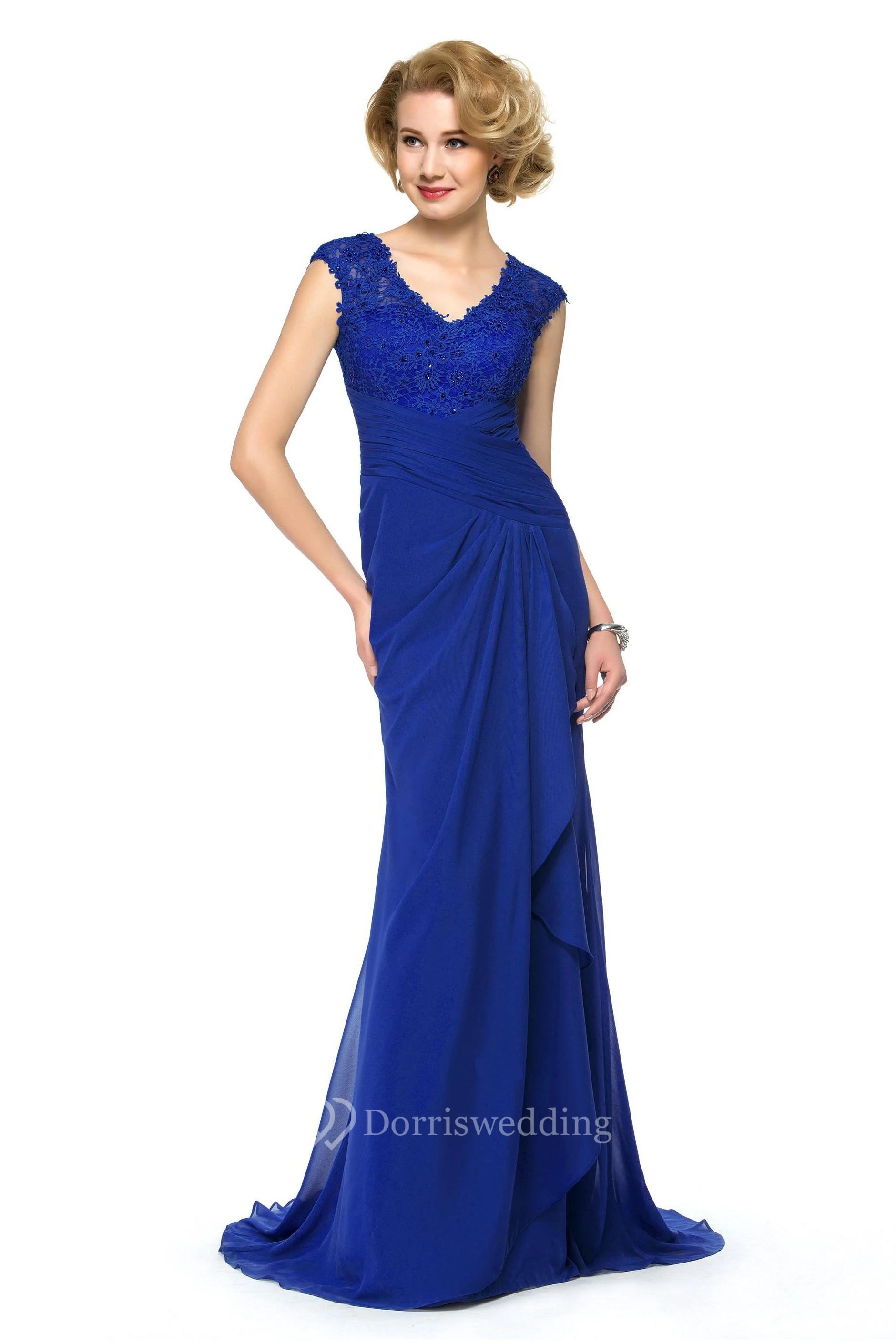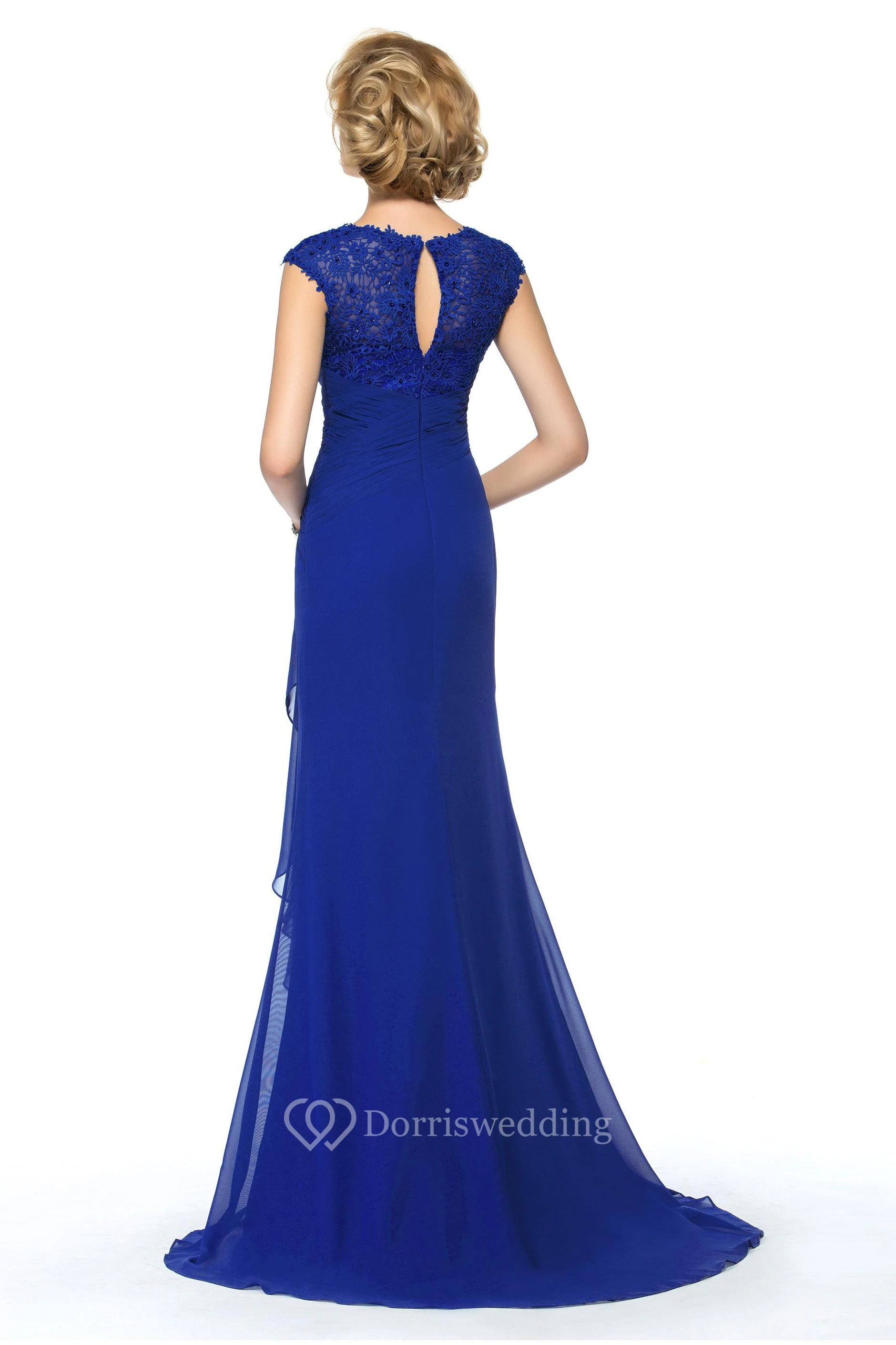 Elegant Chiffon and Lace Sheath V-Neck Cap Sleeve Keyhole Dress