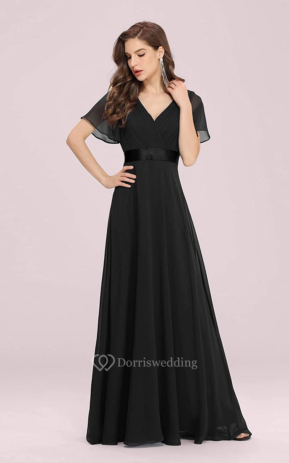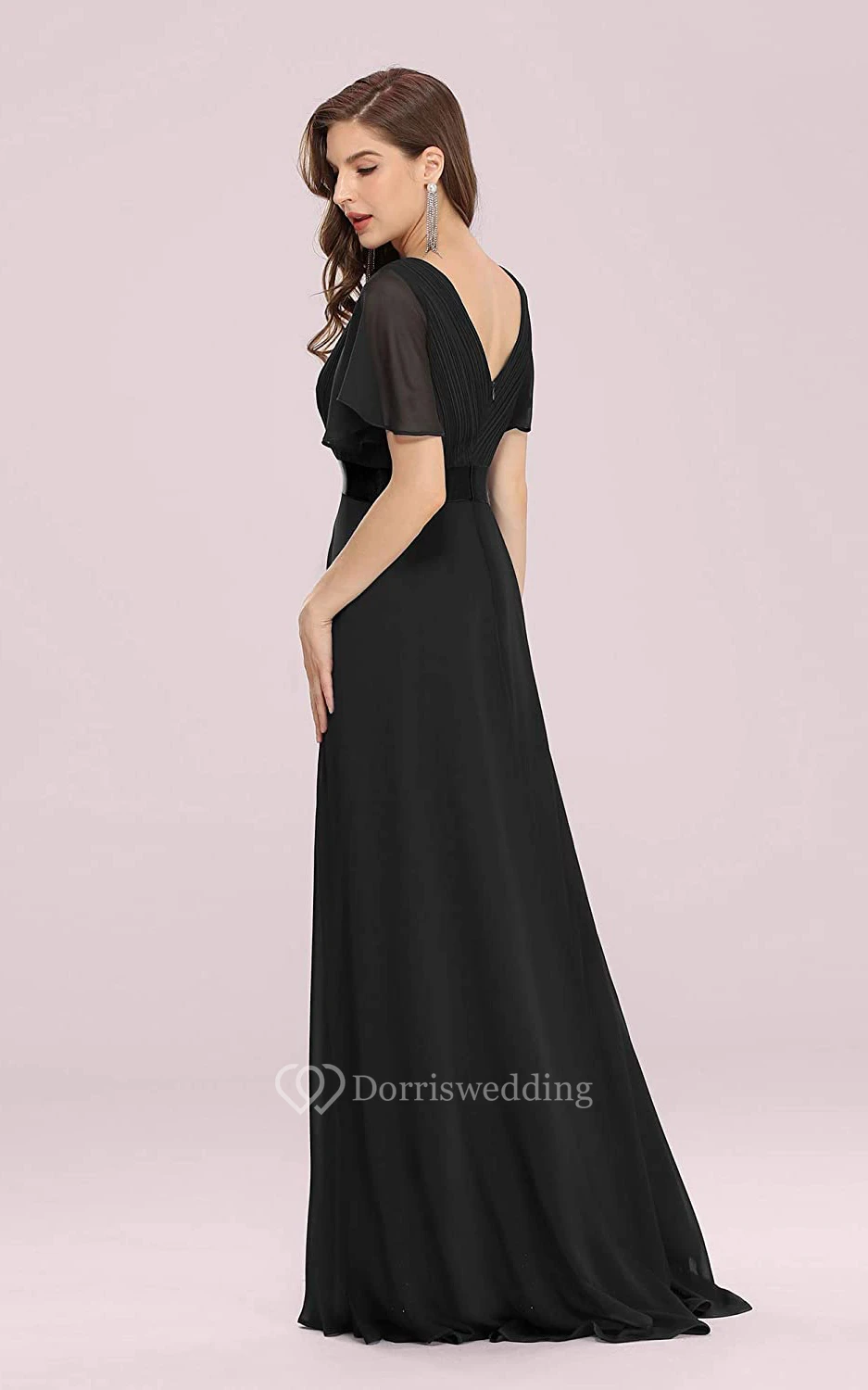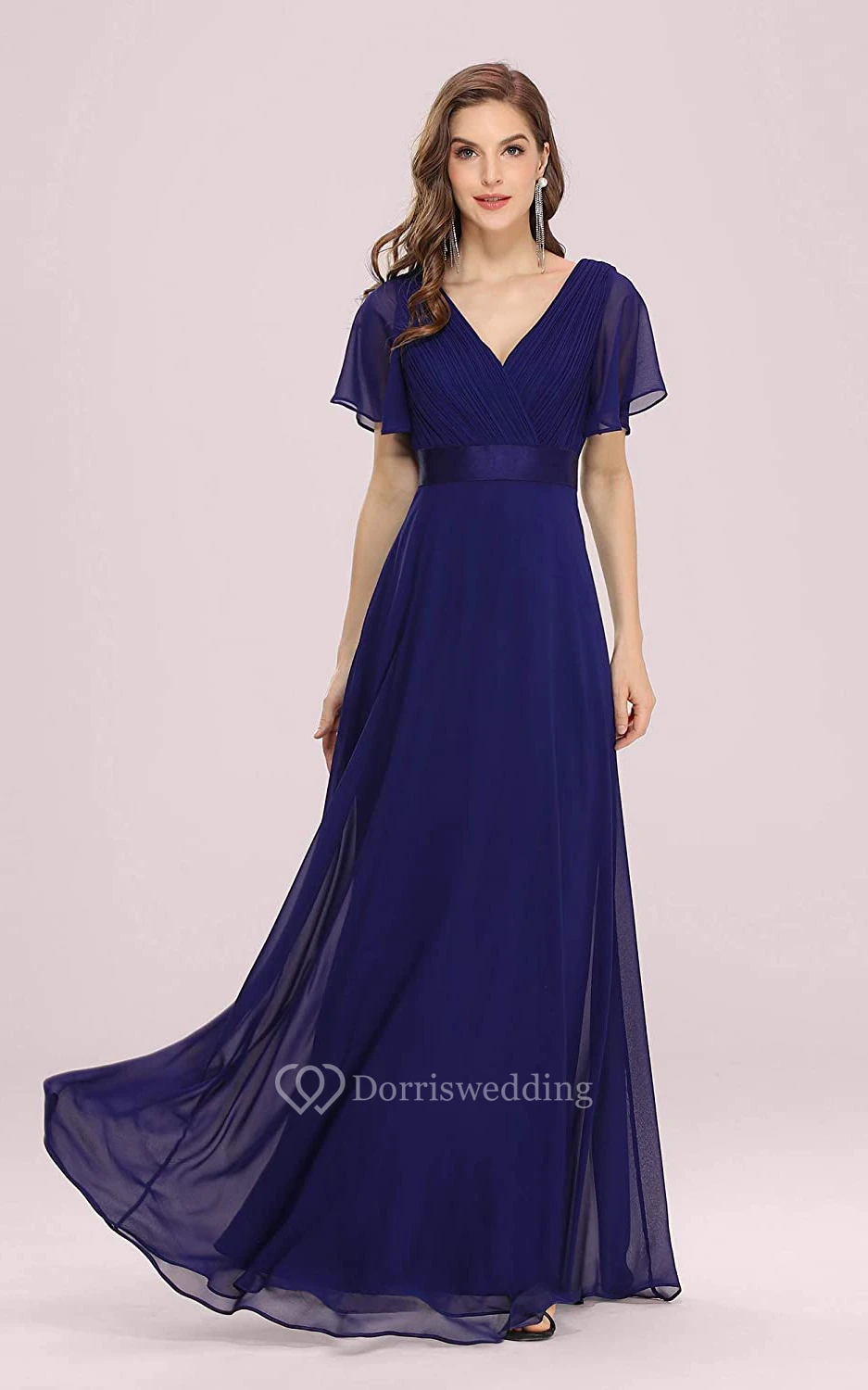 Elegant Chiffon V-neck A Line Short Sleeve Prom Mother Dress With Ruffles