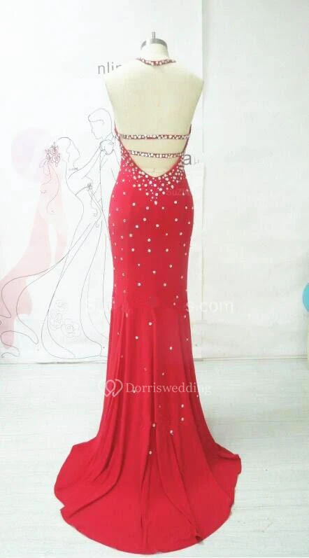 Elegant Evening Long Open Back Prom Dresses Rhinestone New Dress