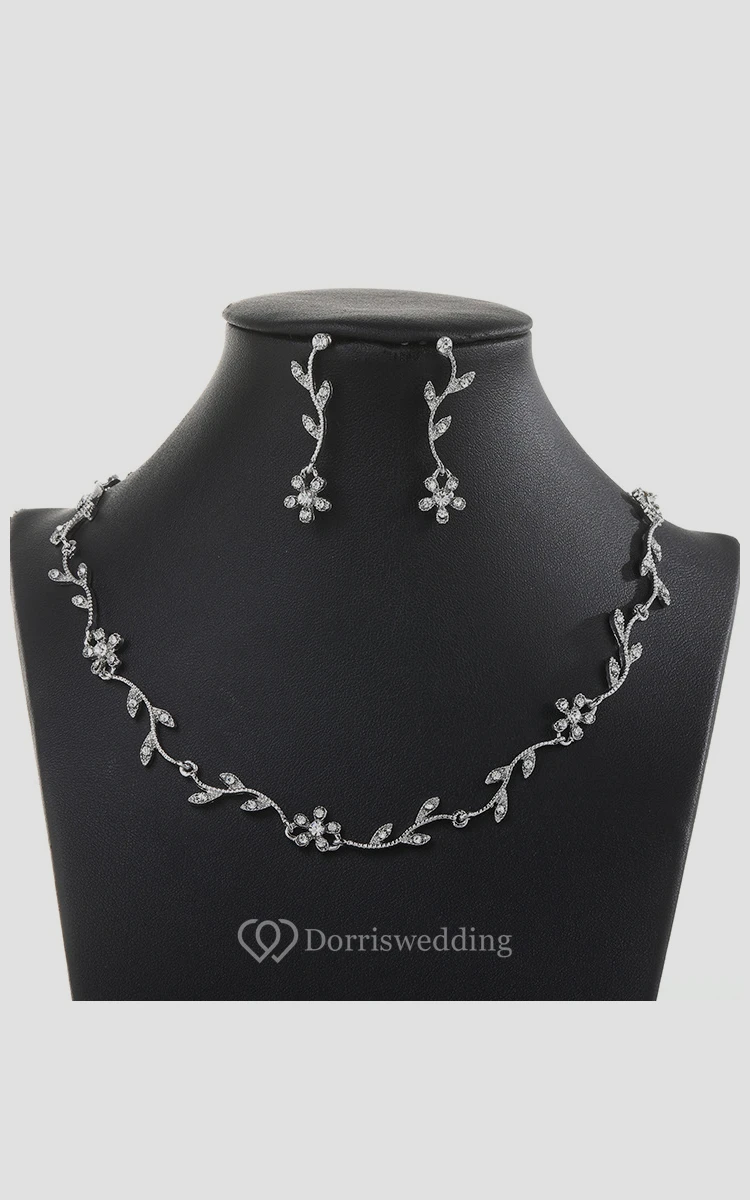 Elegant Flower Design Rhinestone Necklace and Earrings Jewelry Set