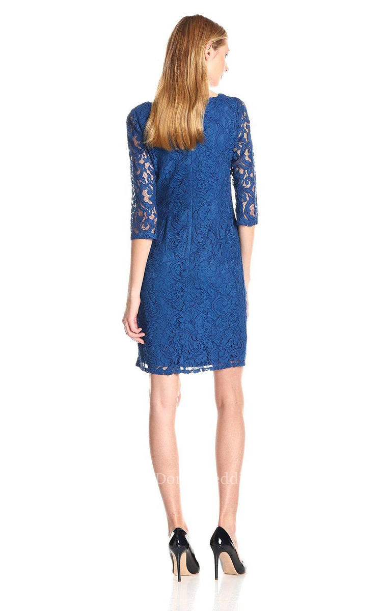 This dress features a beautiful satin liner and an elegant lace overlay that offers a tailored fit for a classic look. It has limited stretch, so please let us know if you have any concerns about sizing or if you'd prefer adjustments for optimal comfort.