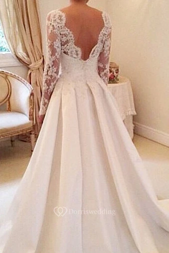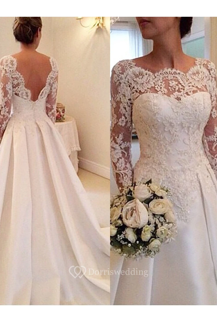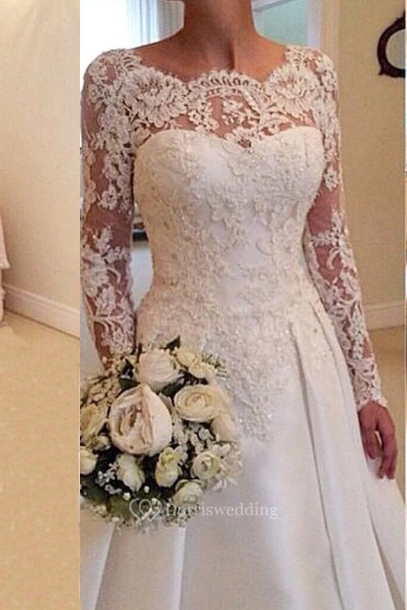 Elegant Illusion Long Sleeve Modest Wedding Dress With Lace Appliques