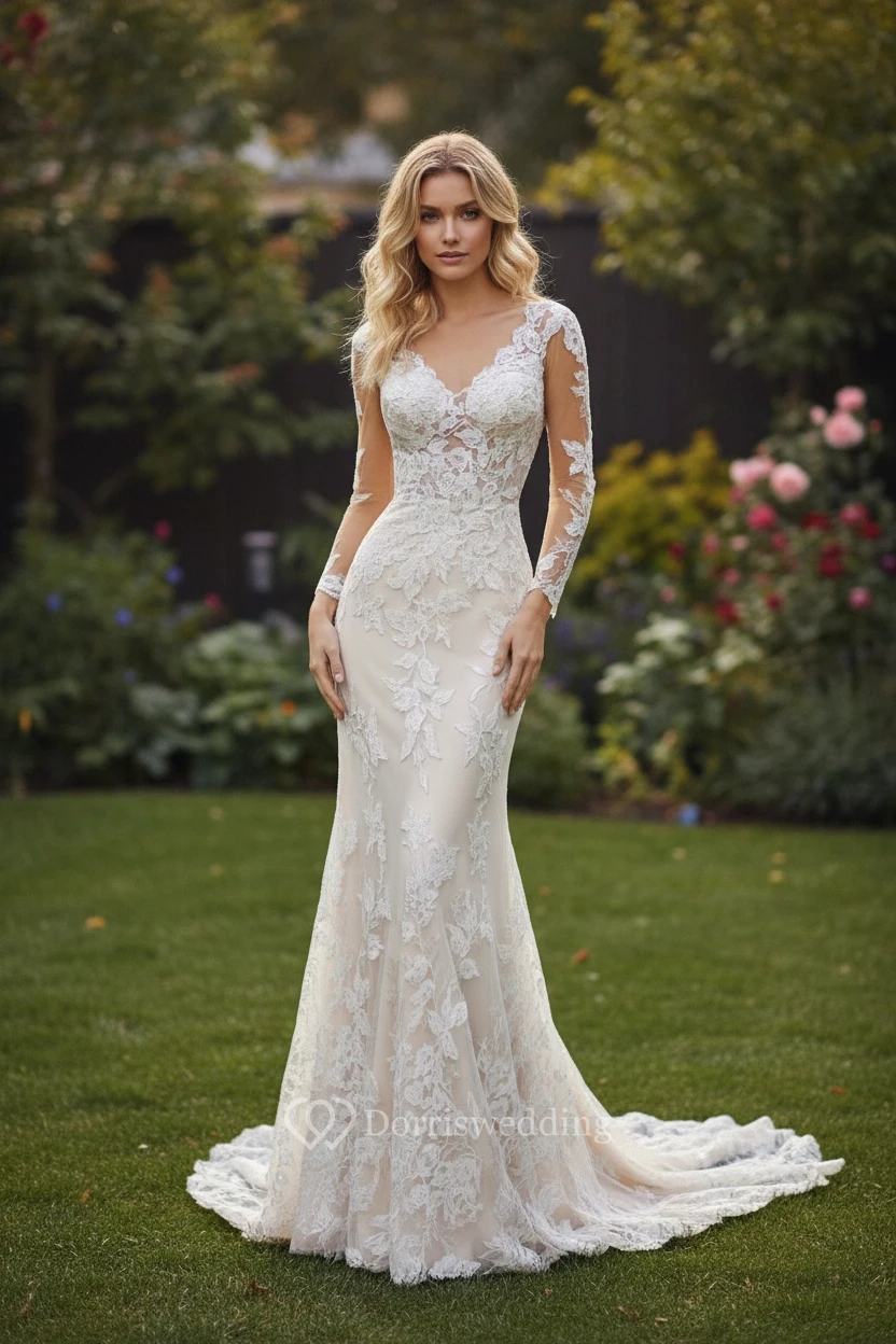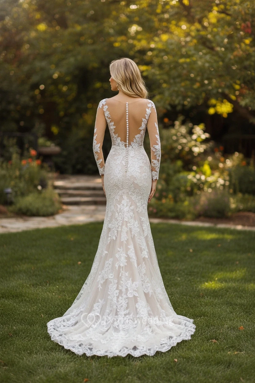 I never thought I could find a mermaid dress that was also modest, but this one is perfect. The jewel neck provides great coverage while the mermaid tail gives it that "wow" factor. The illusion sleeves are the highlight - they look like lace is floating on your skin. I felt so sophisticated and beautiful.