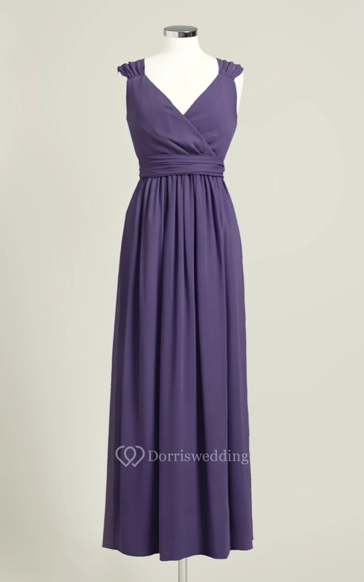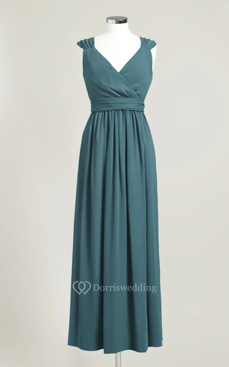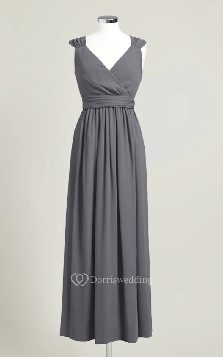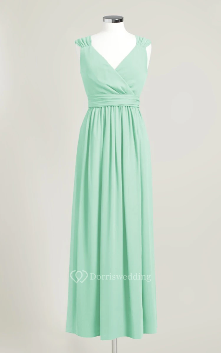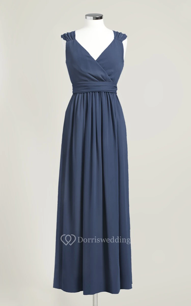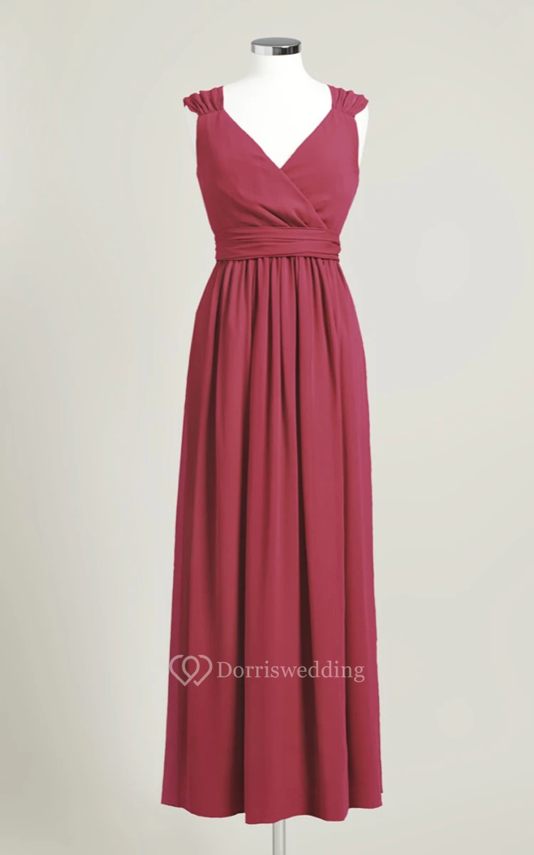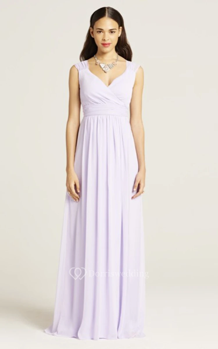 Elegant Long-Chiffon V-Neck Cap-Sleeved Dress