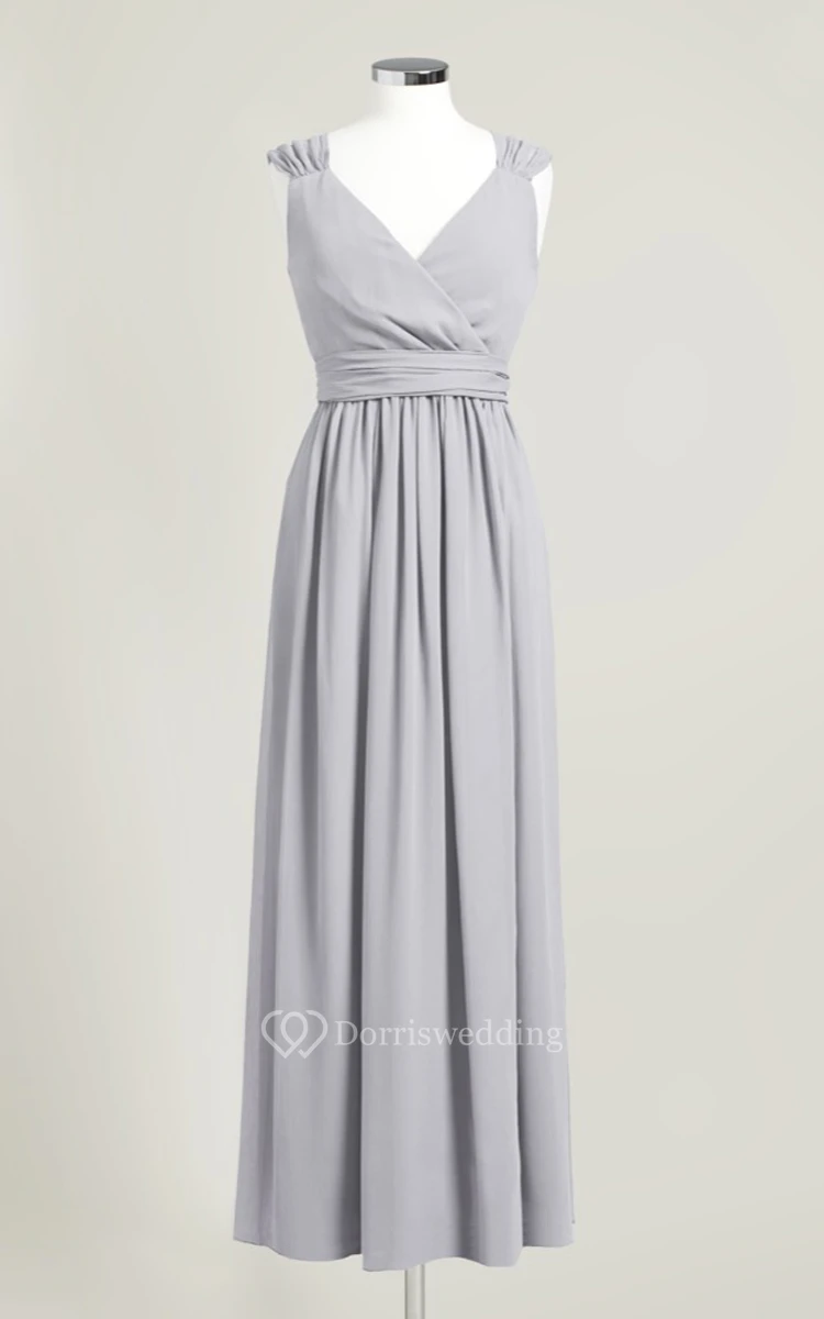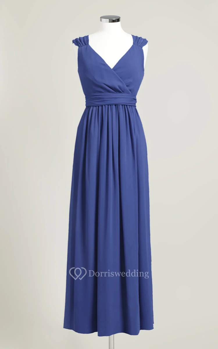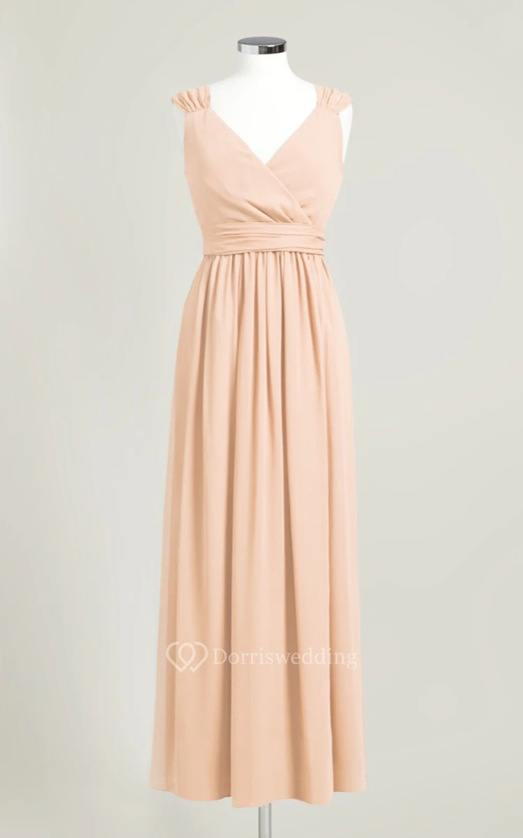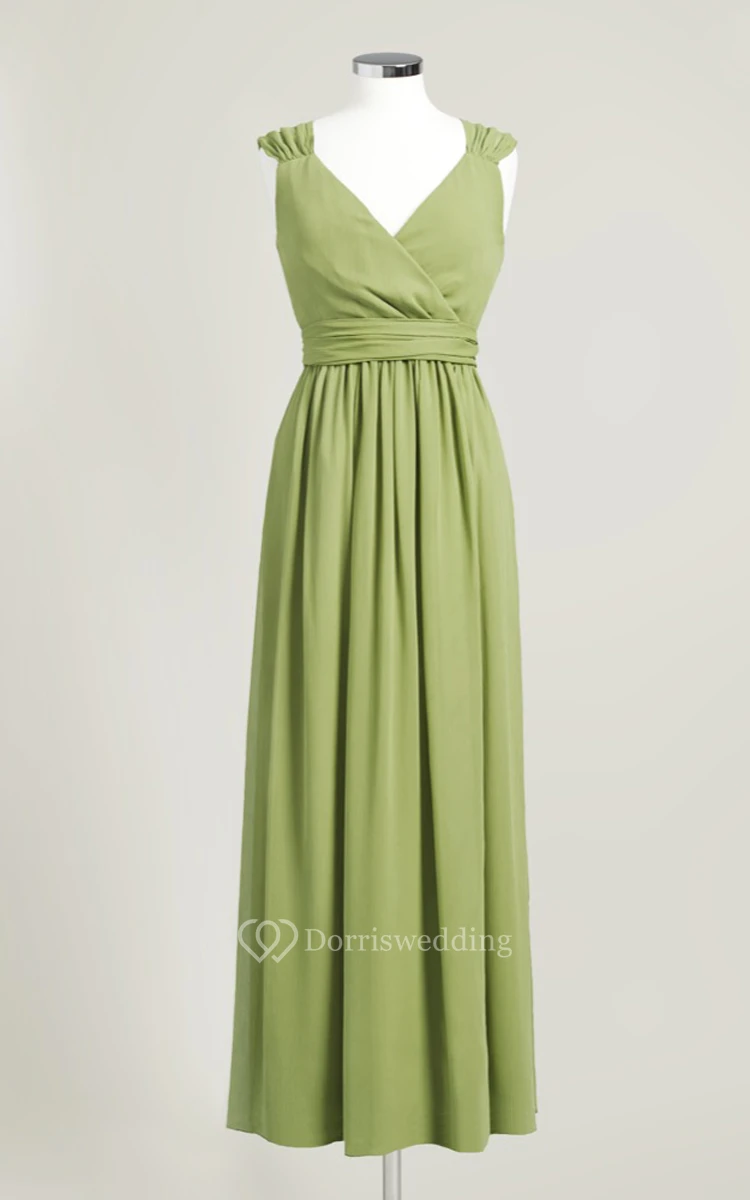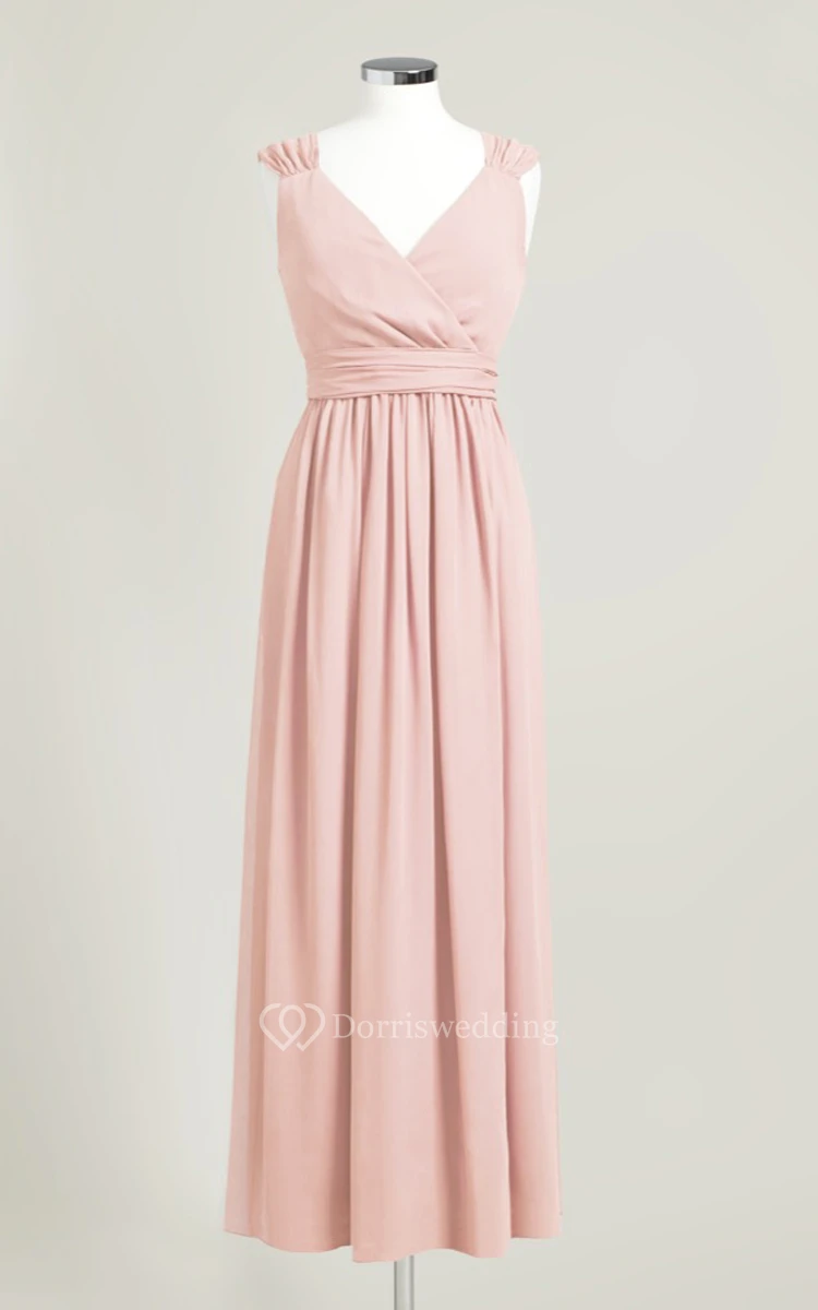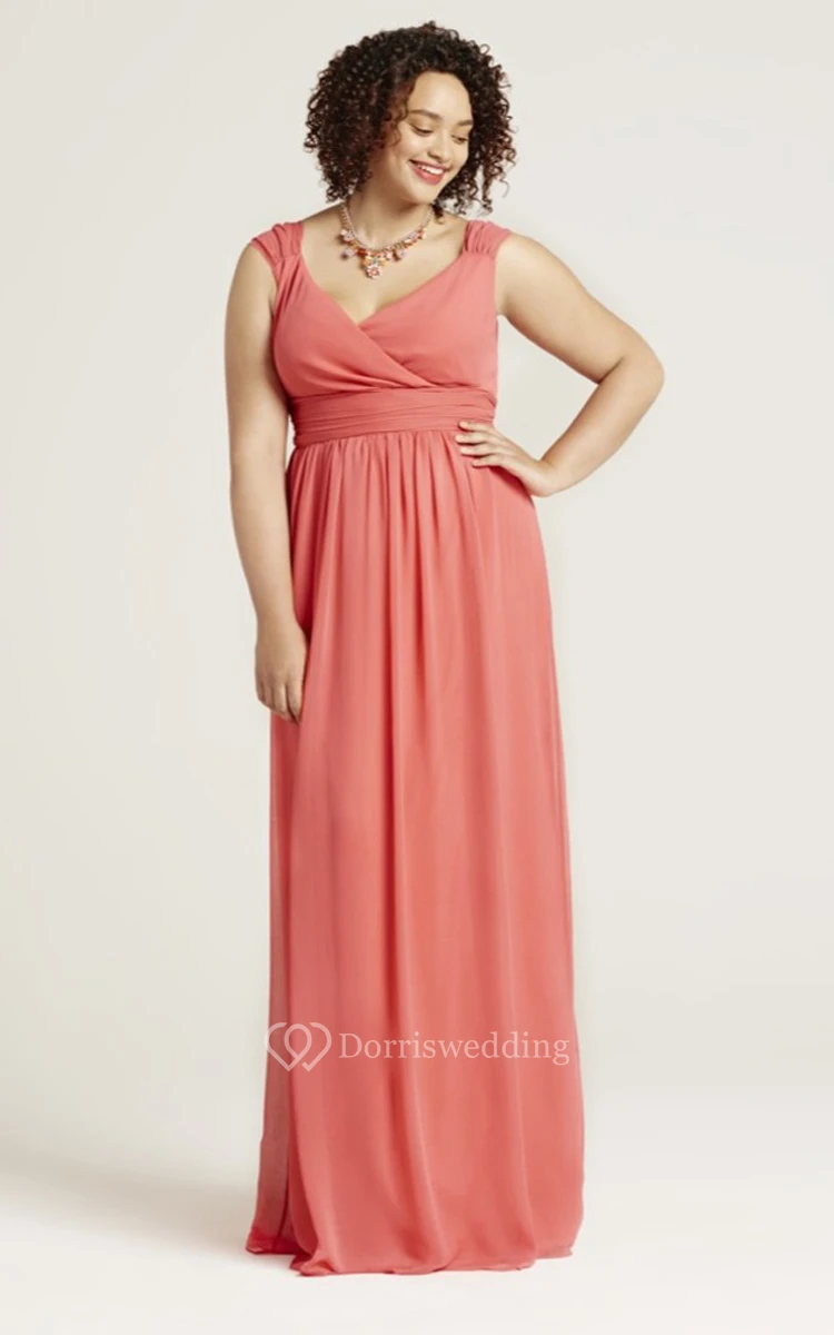 Elegant Long-Chiffon V-Neck Cap-Sleeved Dress