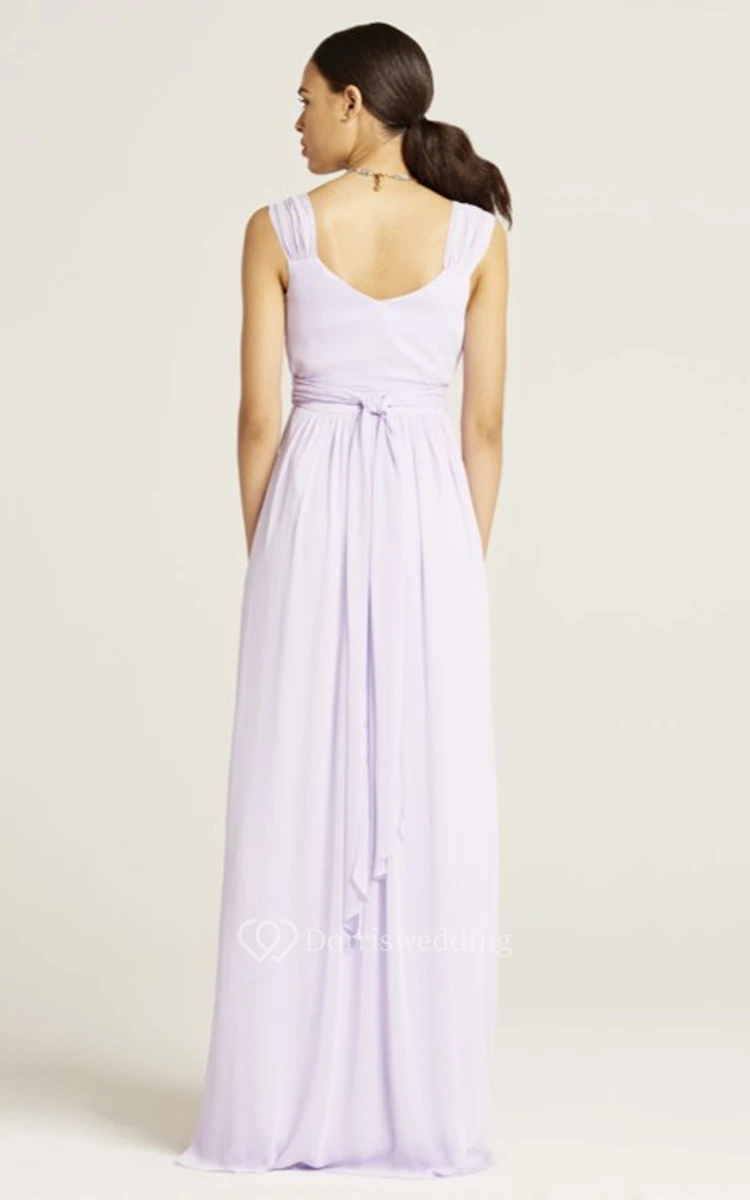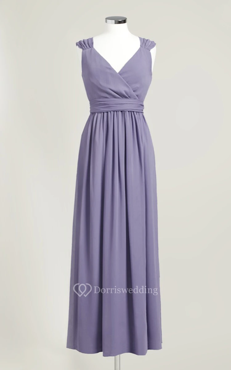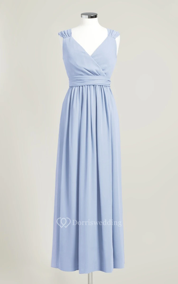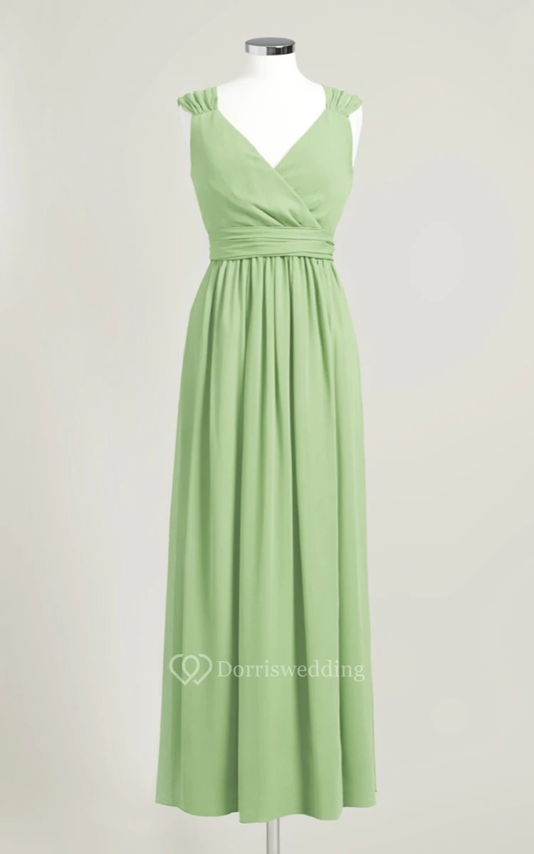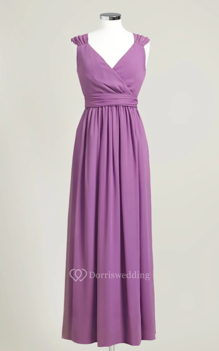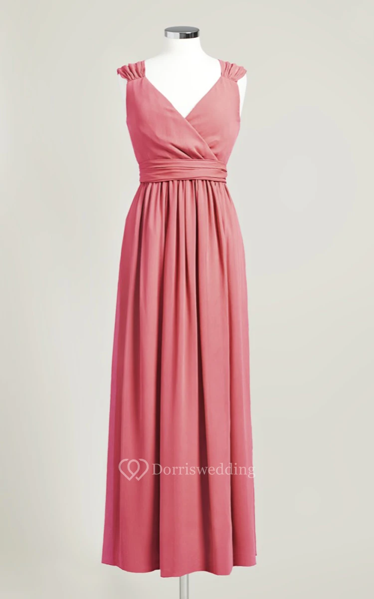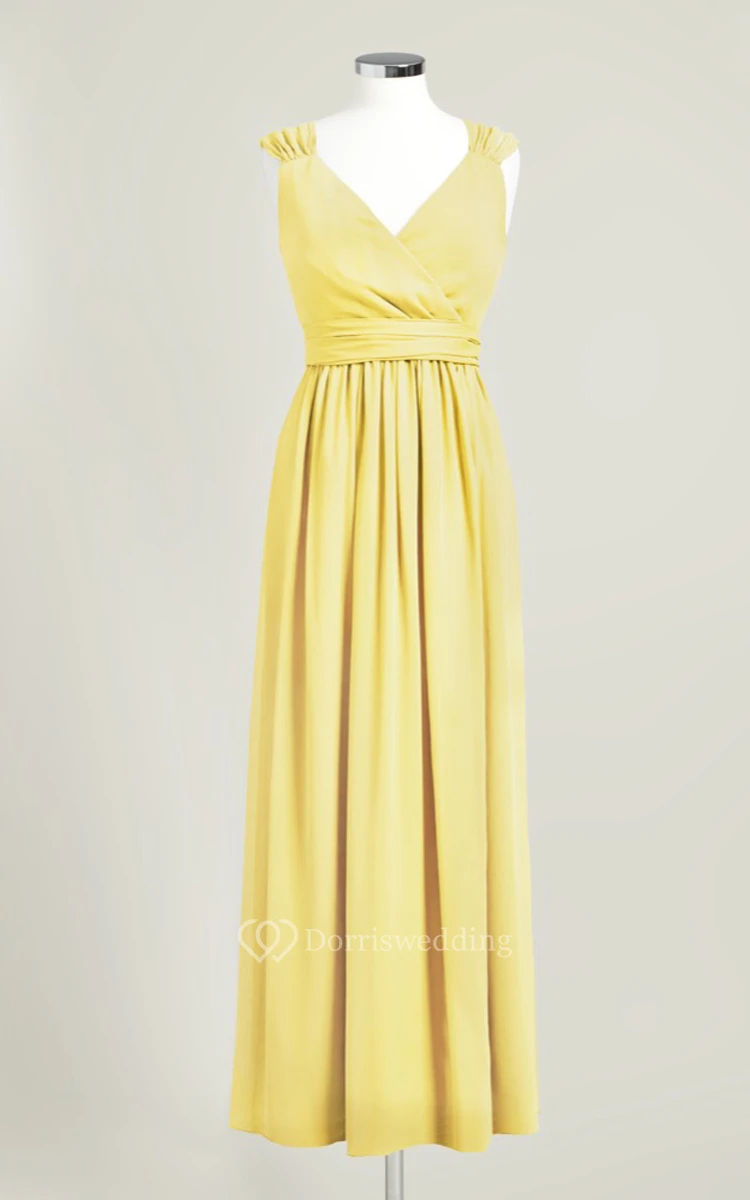 Elegant Long-Chiffon V-Neck Cap-Sleeved Dress