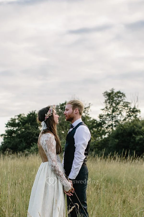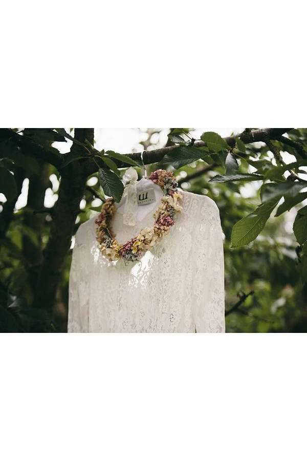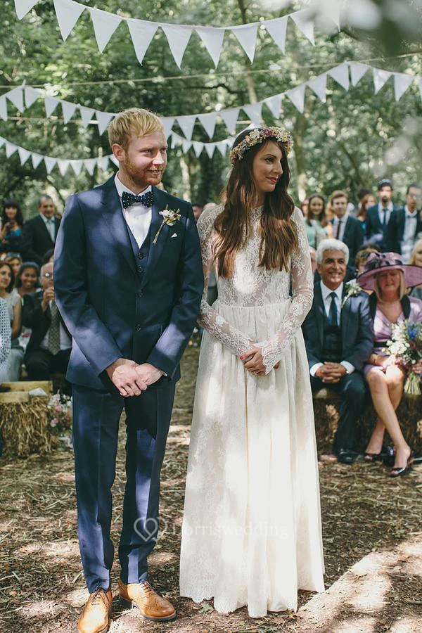 Elegant Long Sleeve Halter Bohemian Wedding Dress Lace Open Back