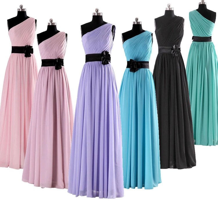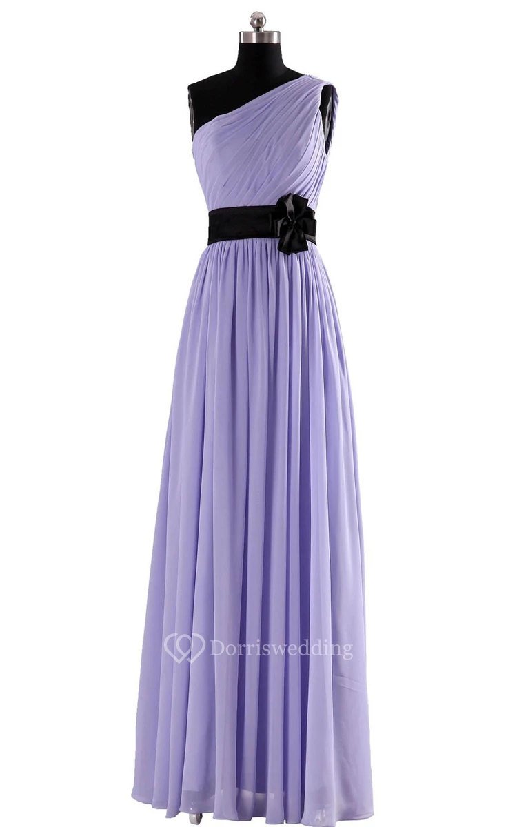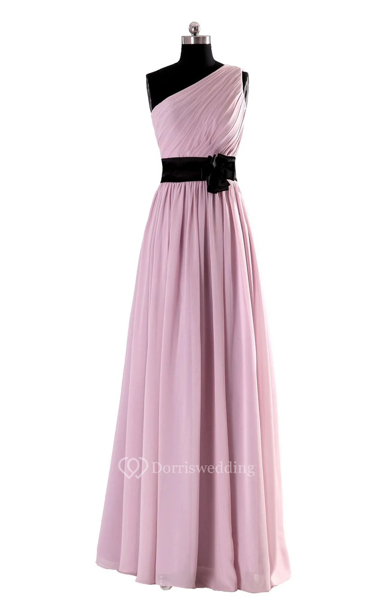 Elegant One-shoulder Chiffon A-line Dress With Floral Band