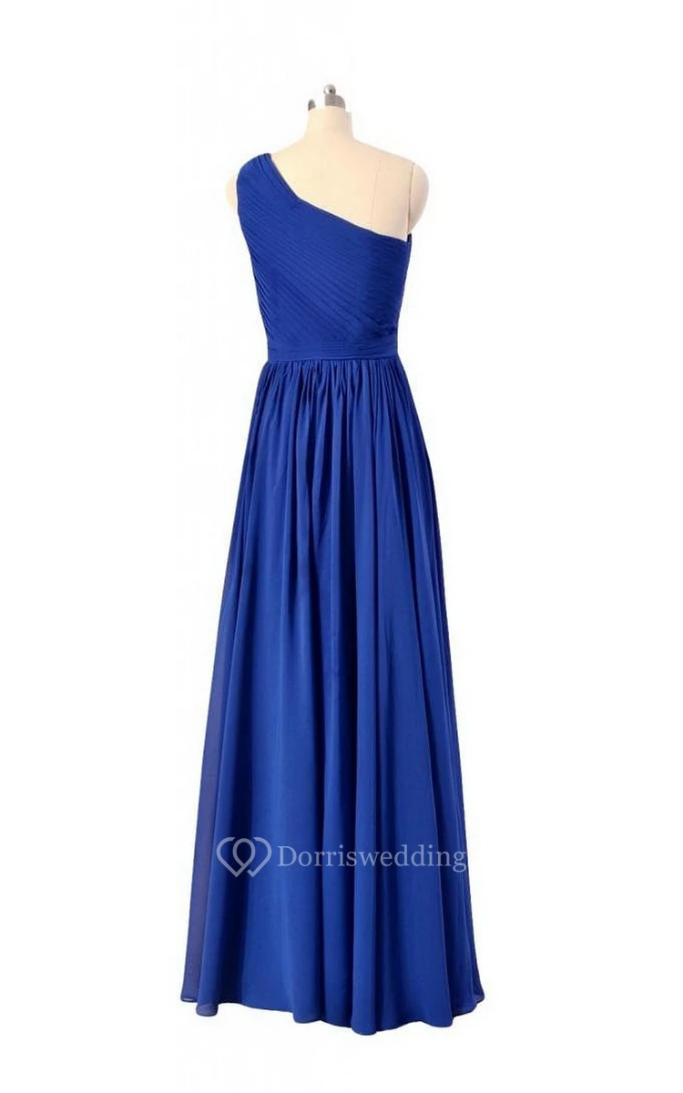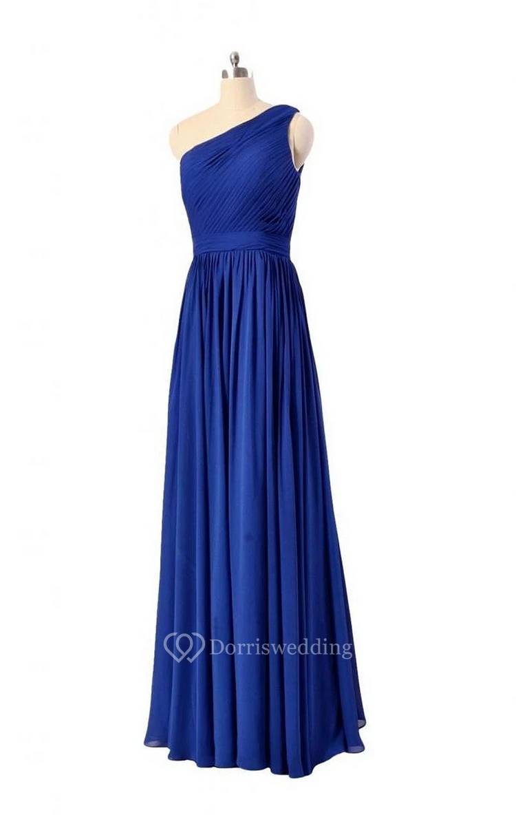 Elegant One-shoulder Pleated Chiffon A-line Gown