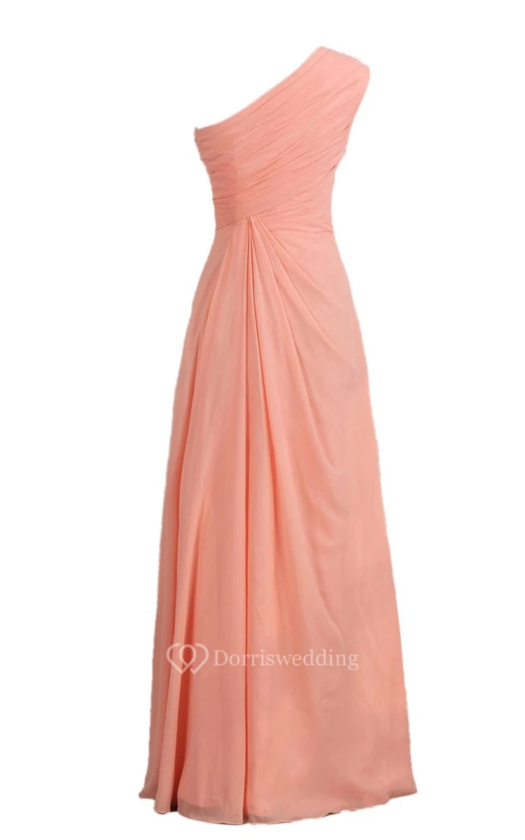 Elegant One-shoulder Side-drappping Chiffon A-line Gown