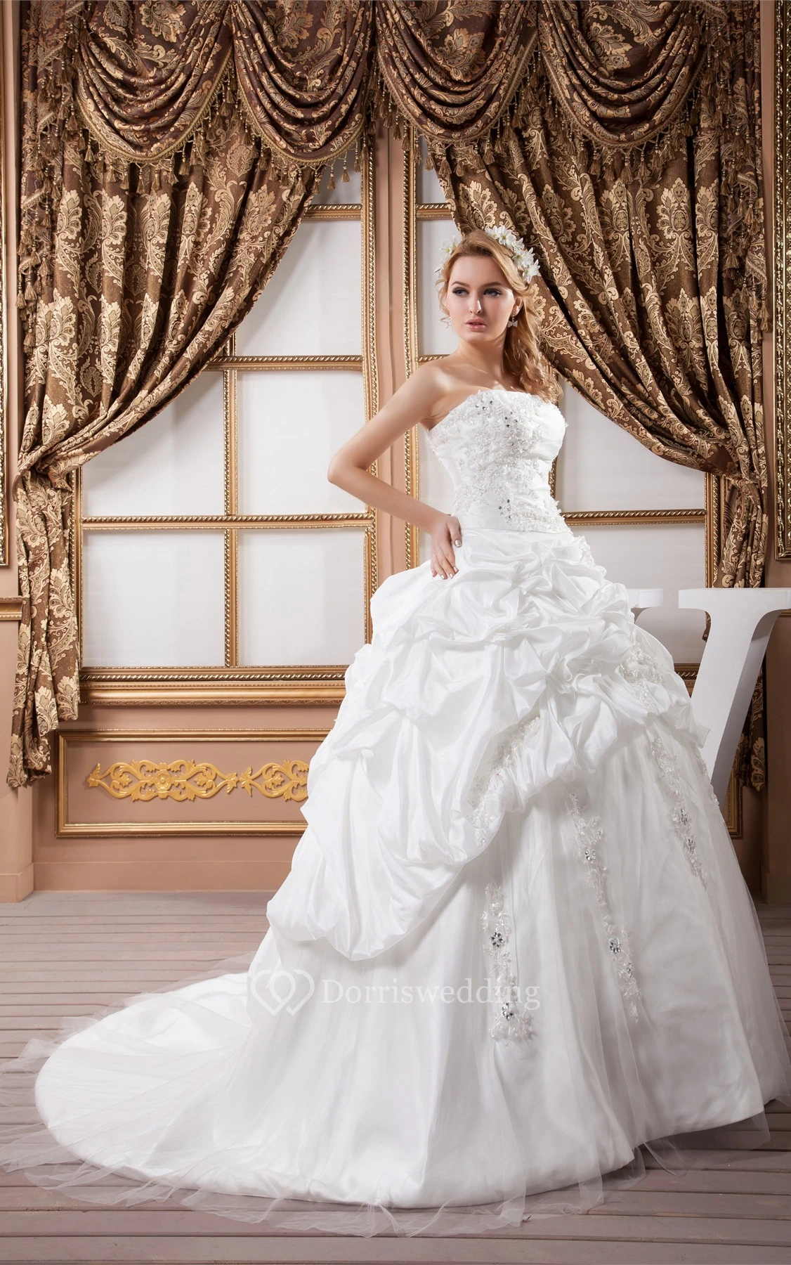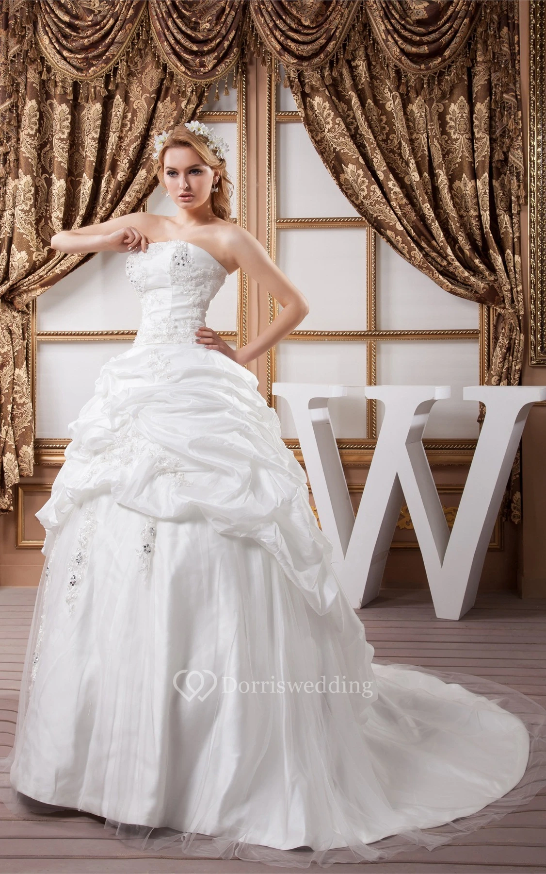 Elegant Pick-Up Court Train and Ball-Gown With Appliques