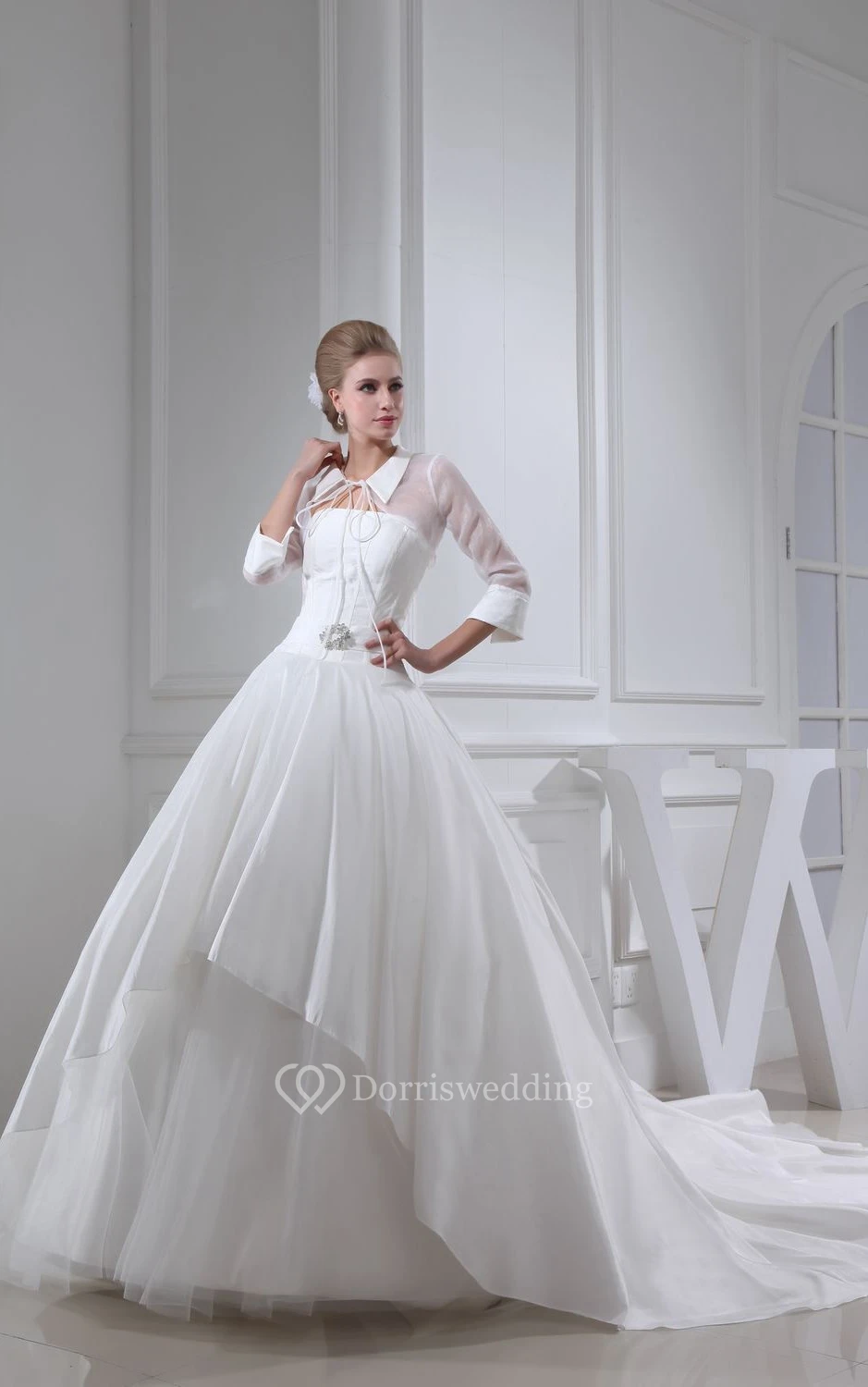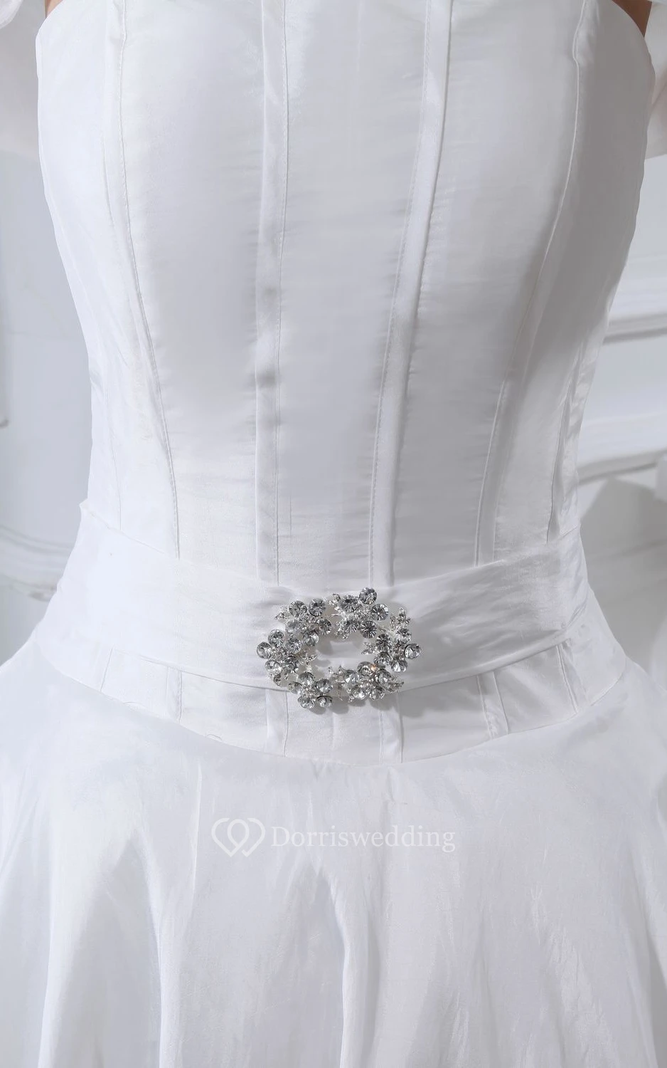 Elegant Pleated 3-4-Sleeve A-Line Dress With Broach and Corset Back