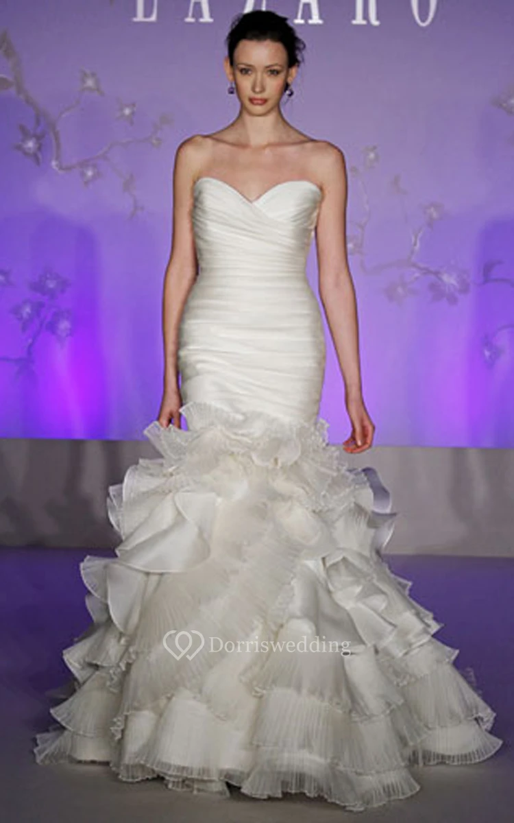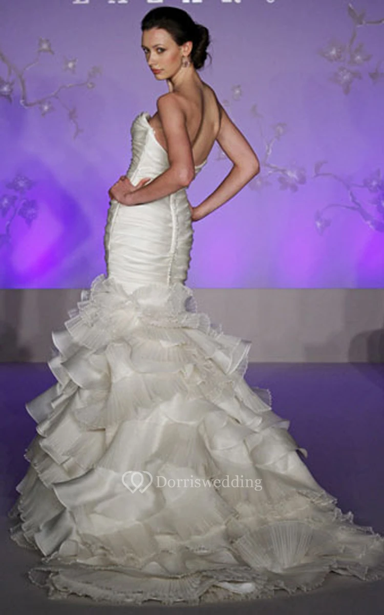 Elegant Pleated Bodice Ruffled Satin Organza Dress With Tiers