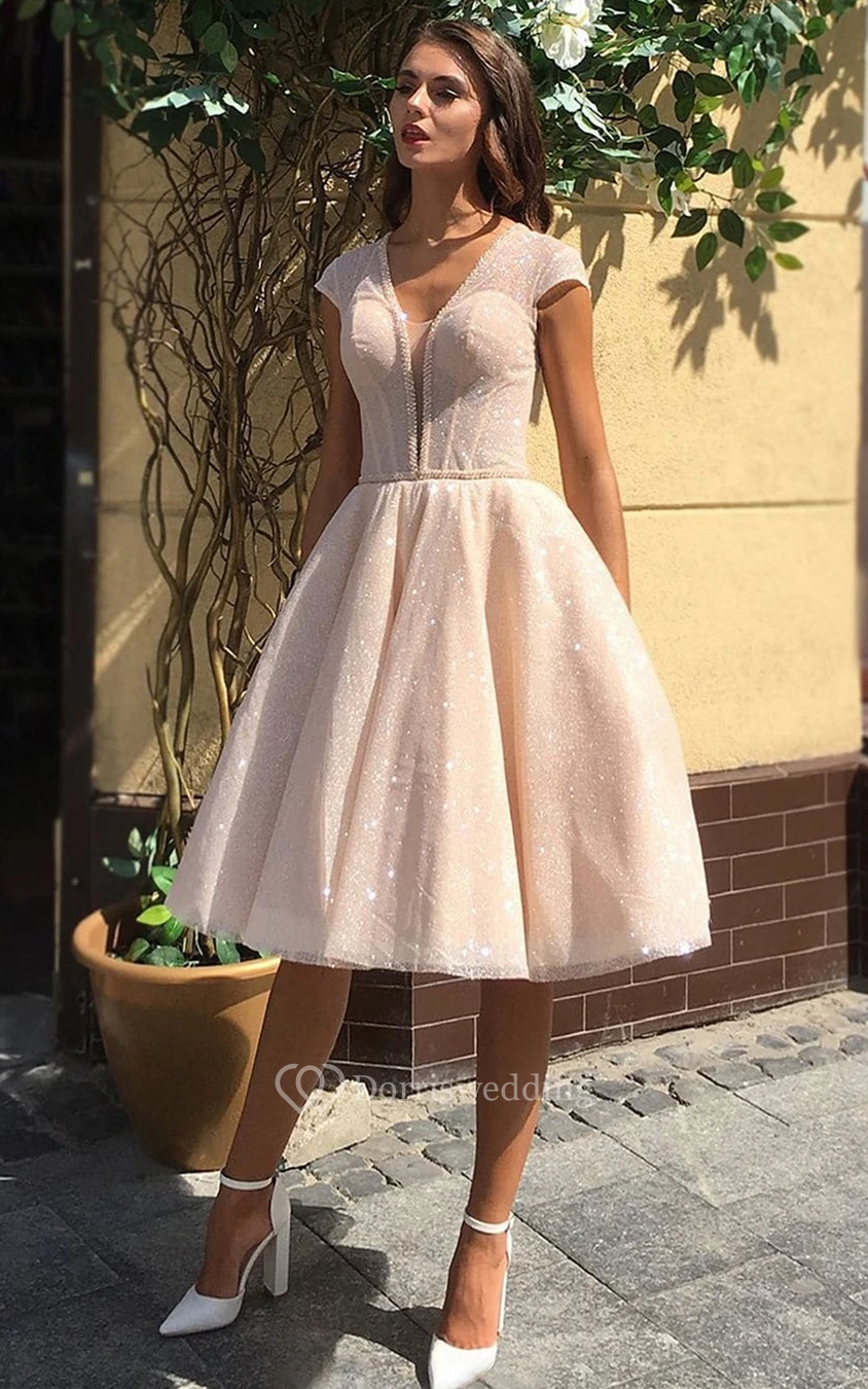 Elegant Plunging Neckline A Line Sequins Knee-length Homecoming Dress