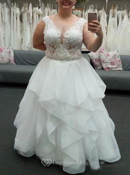 Elegant Plus Size Sleeveless Applique Zipper Ruched Lace Top Bridal Dress