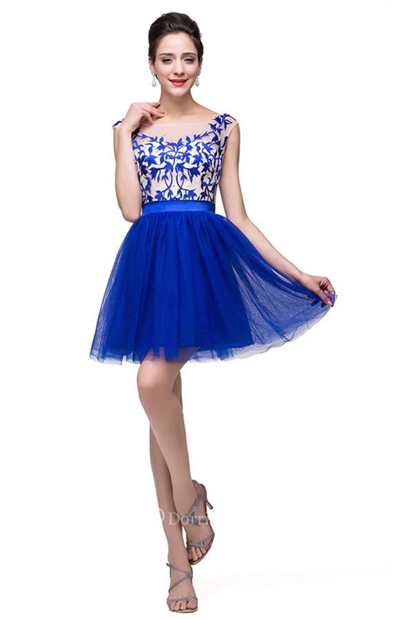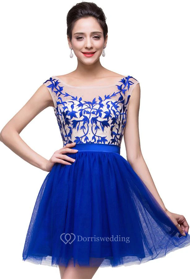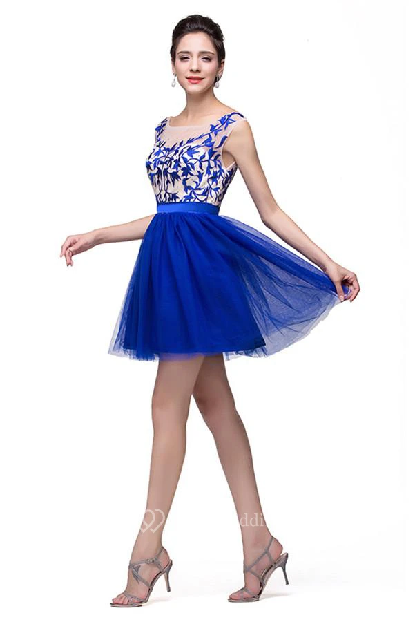 Elegant Royal Blue Sleeveless Short Homecoming Dress With Appliques