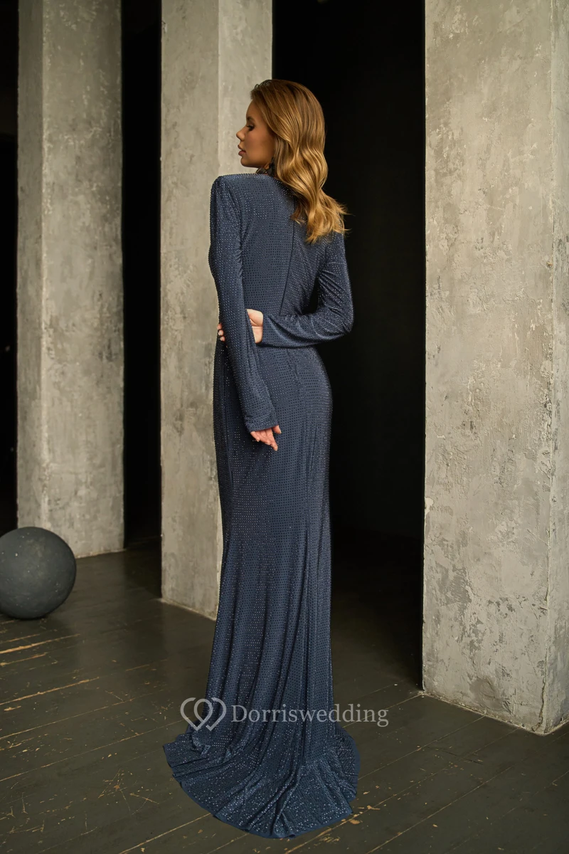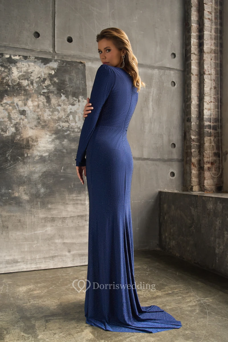 Elegant Ruched Long Sleeve Front Split Sheath Dress