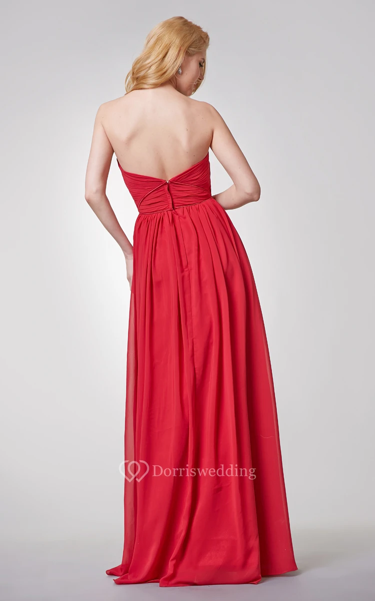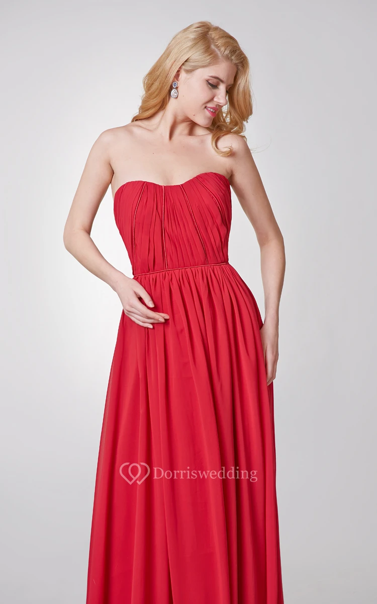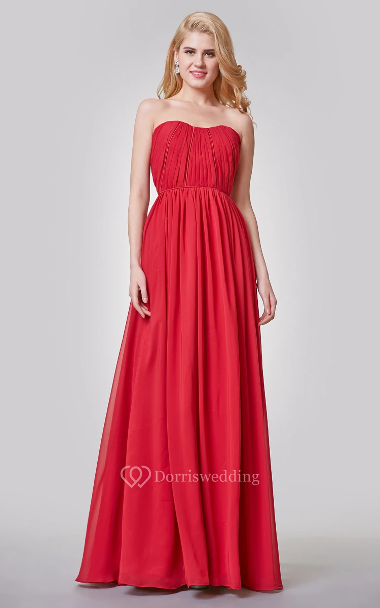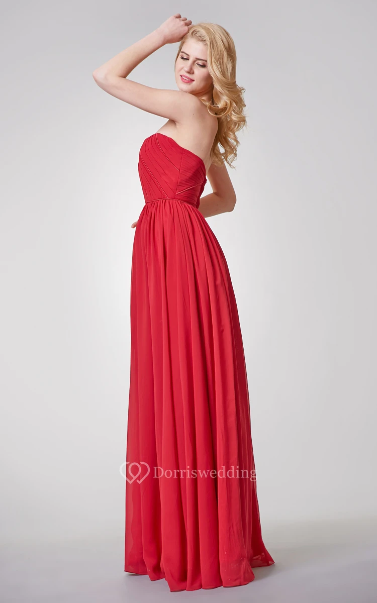 Elegant Ruched Strapless A-line Long Chiffon Dress