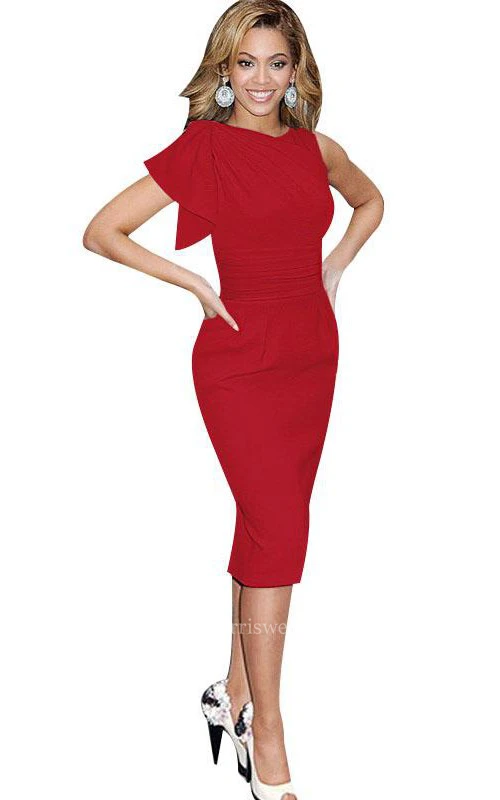 Elegant Ruffles Bodycon Knee Length High Neck Jersey Dress