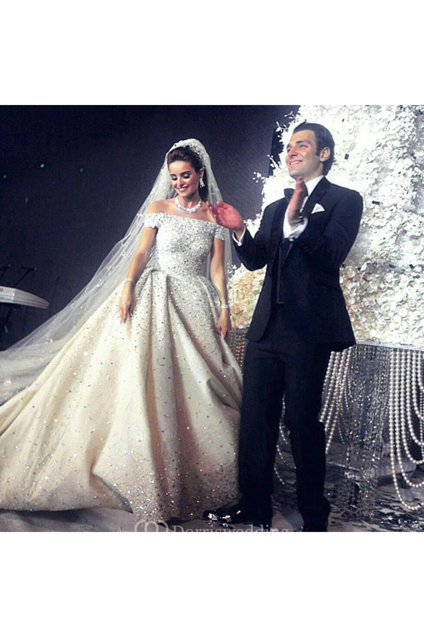 Elegant Sequined Ball Gown Wedding Dress Off-the-shoulder Court Train