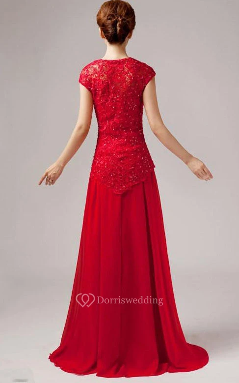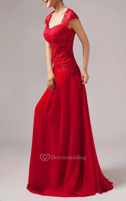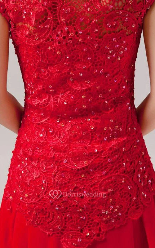 Elegant Short Sleeves A-Line Lace Floor Length Prom Dress
