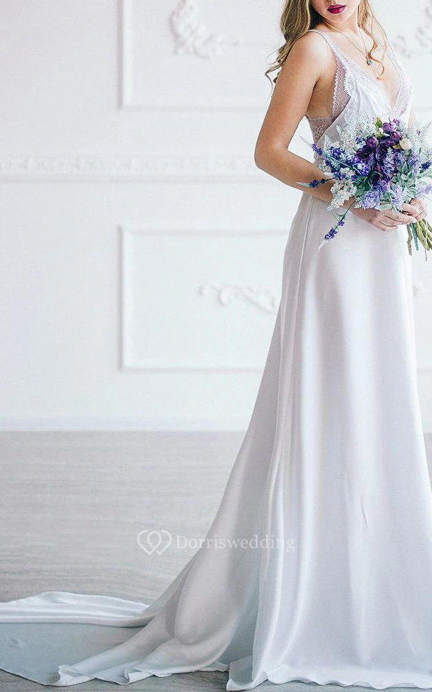 Elegant And Lace Wedding White Prom Bohemian Boho Or Beach Wedding Simple Two Piece Wedding Dress