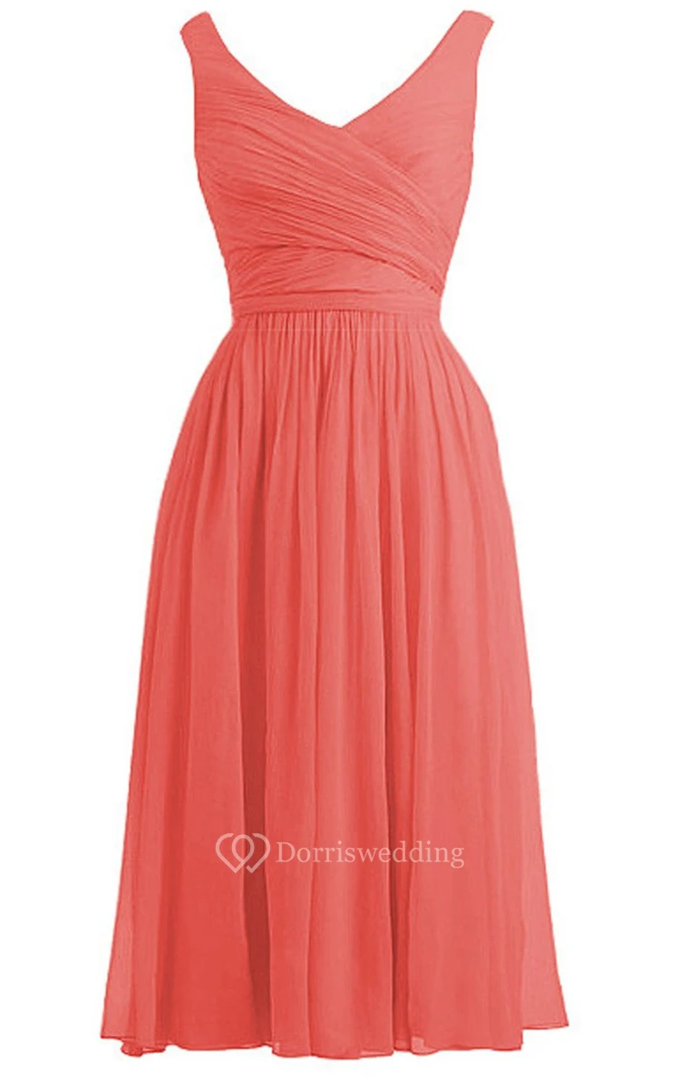 Elegant Sleeveless Basque Waist Chiffon Dress