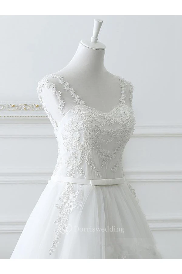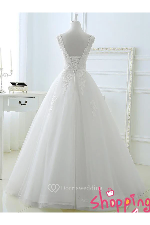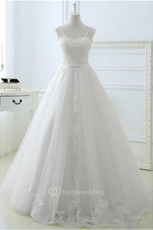 Elegant Sleeveless Lace A-Line Wedding Dresses Tulle Floor Length