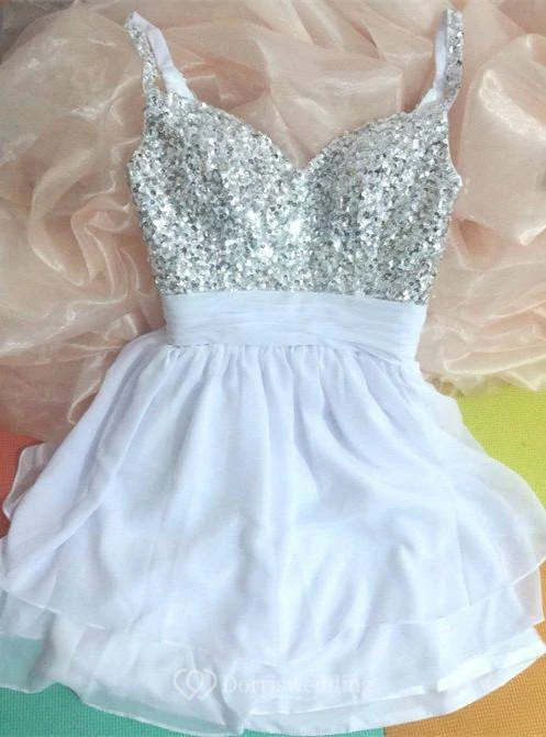 Elegant Spaghetti Strap Sequins Short Hiffon Homecoming Dress