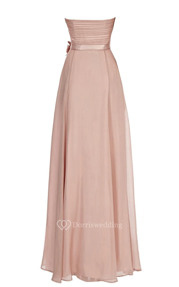 Elegant Strapless Ruched A-line Gown With Floral Sash