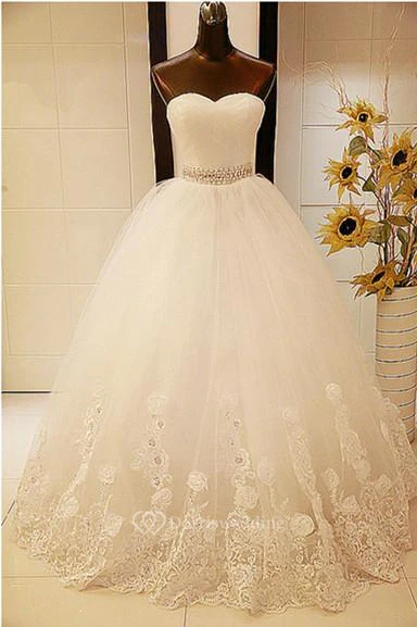 Elegant Sweetheart Sleeveless Ball Gown Wedding Dress With Tulle Lace Beadings