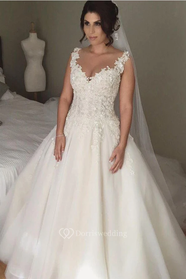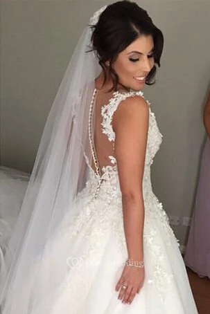 Elegant Tulle Lace Appliques Wedding Dress Styles Button Zipper Back