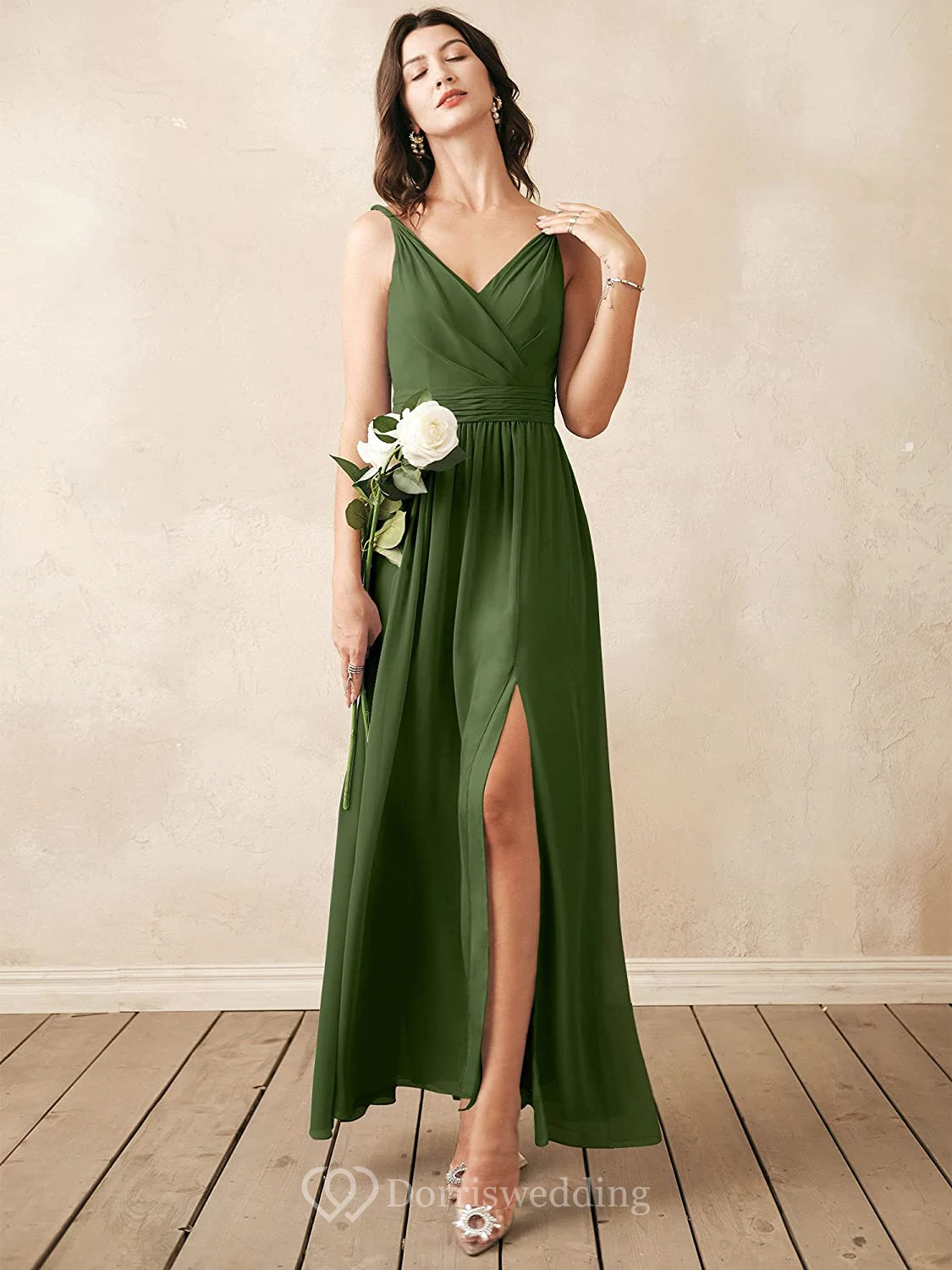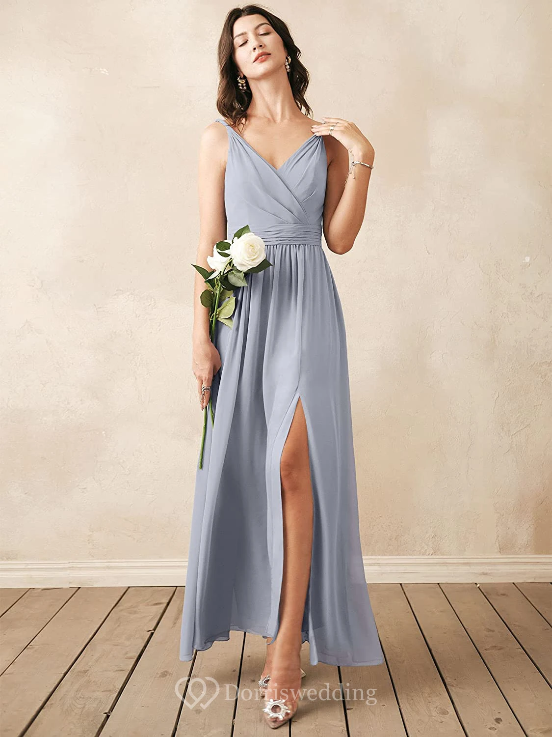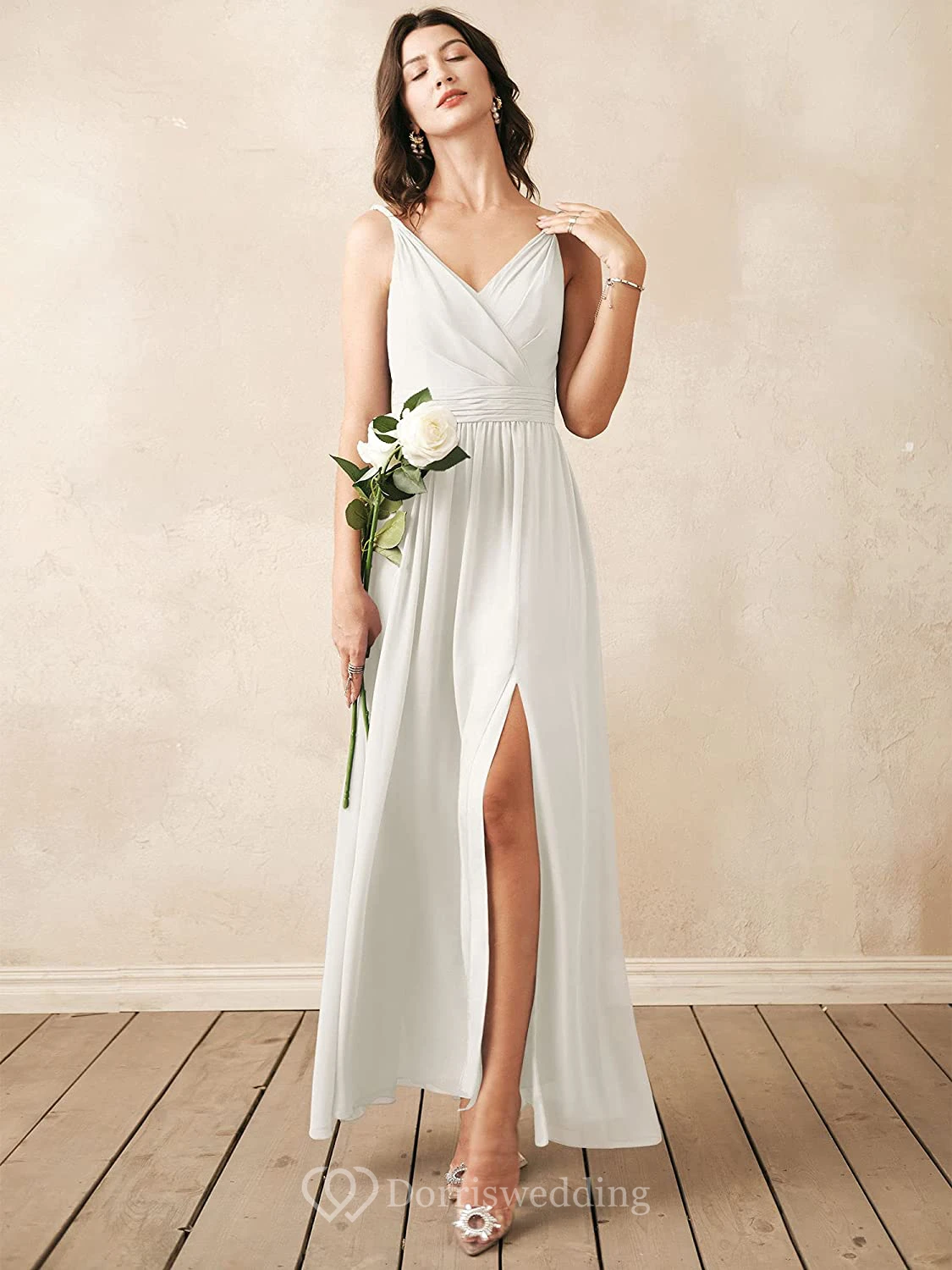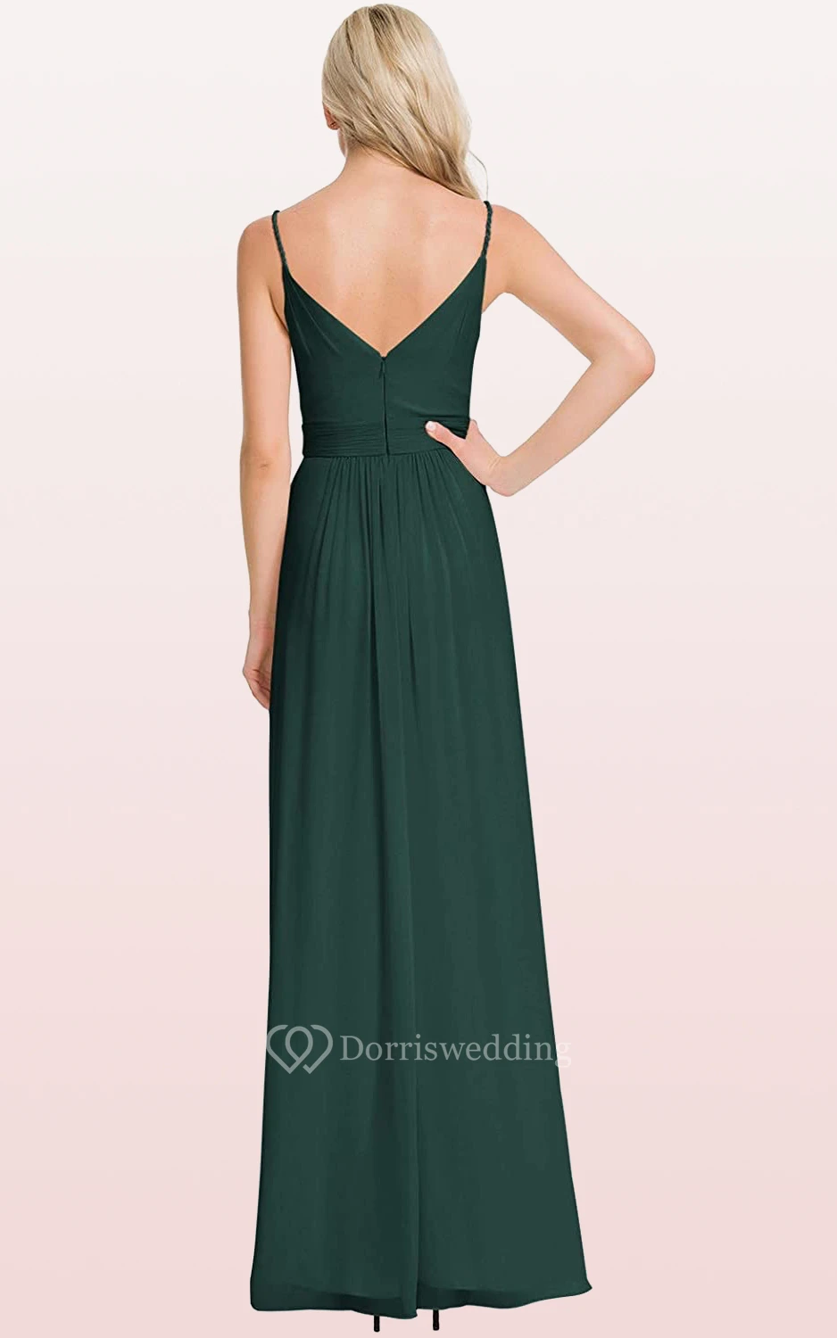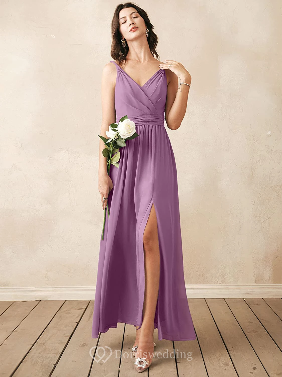 Elegant V-neck A Line Sleeveless Ankle-length Chiffon Bridesmaid Dress With Ruching