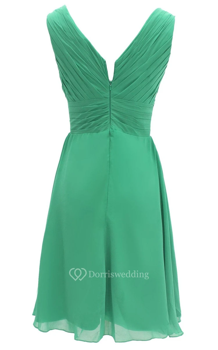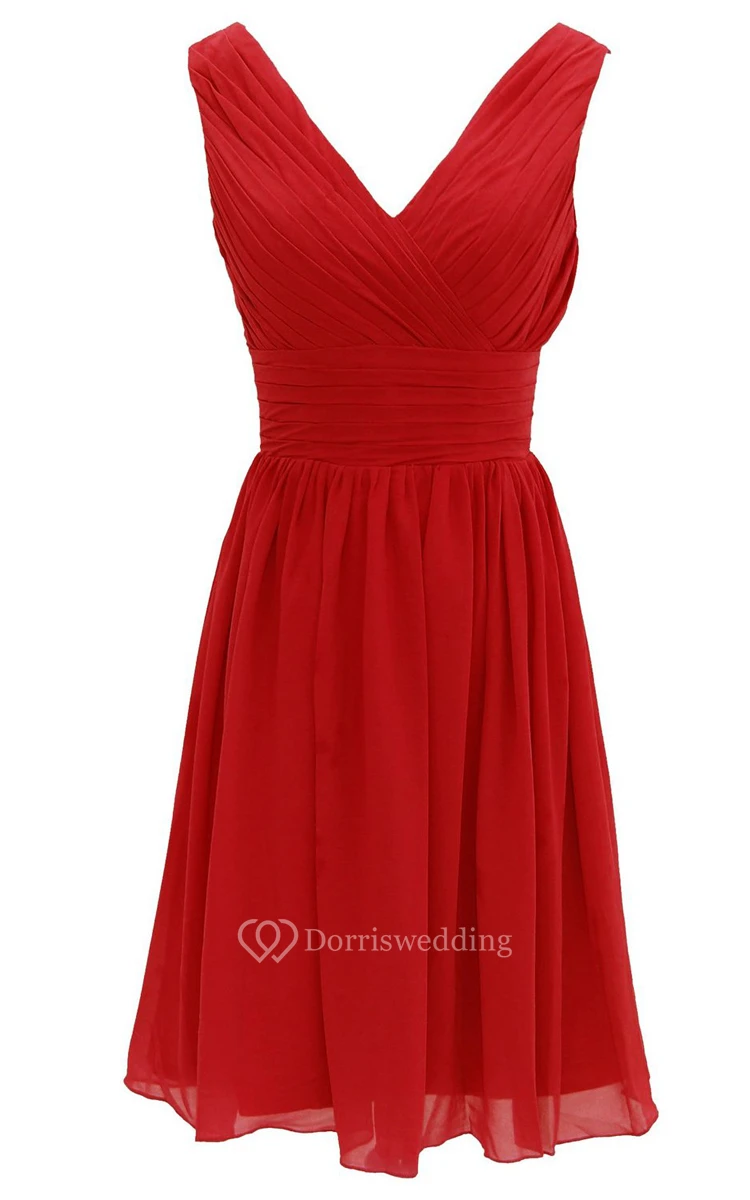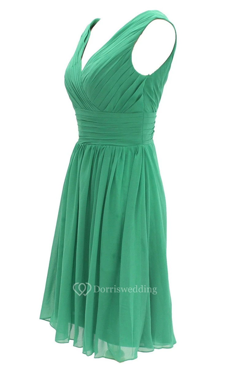 Elegant V-neckline Chiffon Dress With Basque Waist