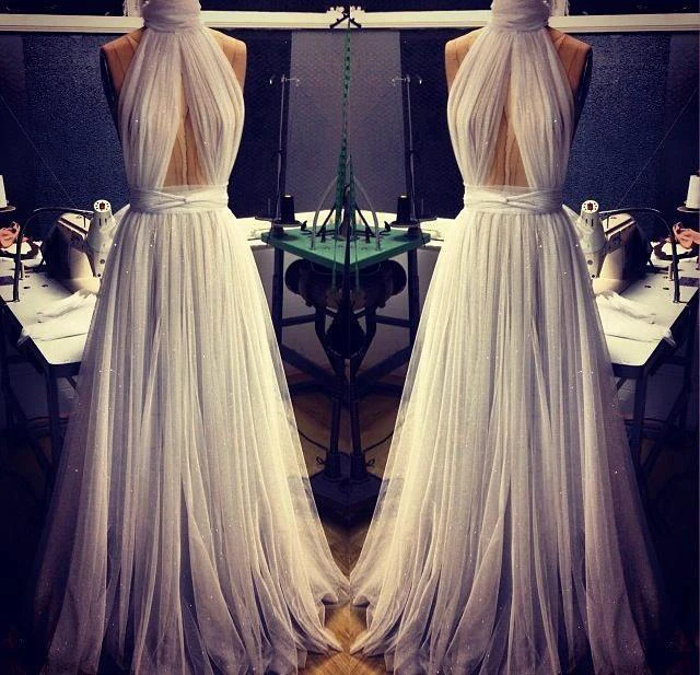 Elegant White High-Neck Prom Dresses Long Evening Party Gowns