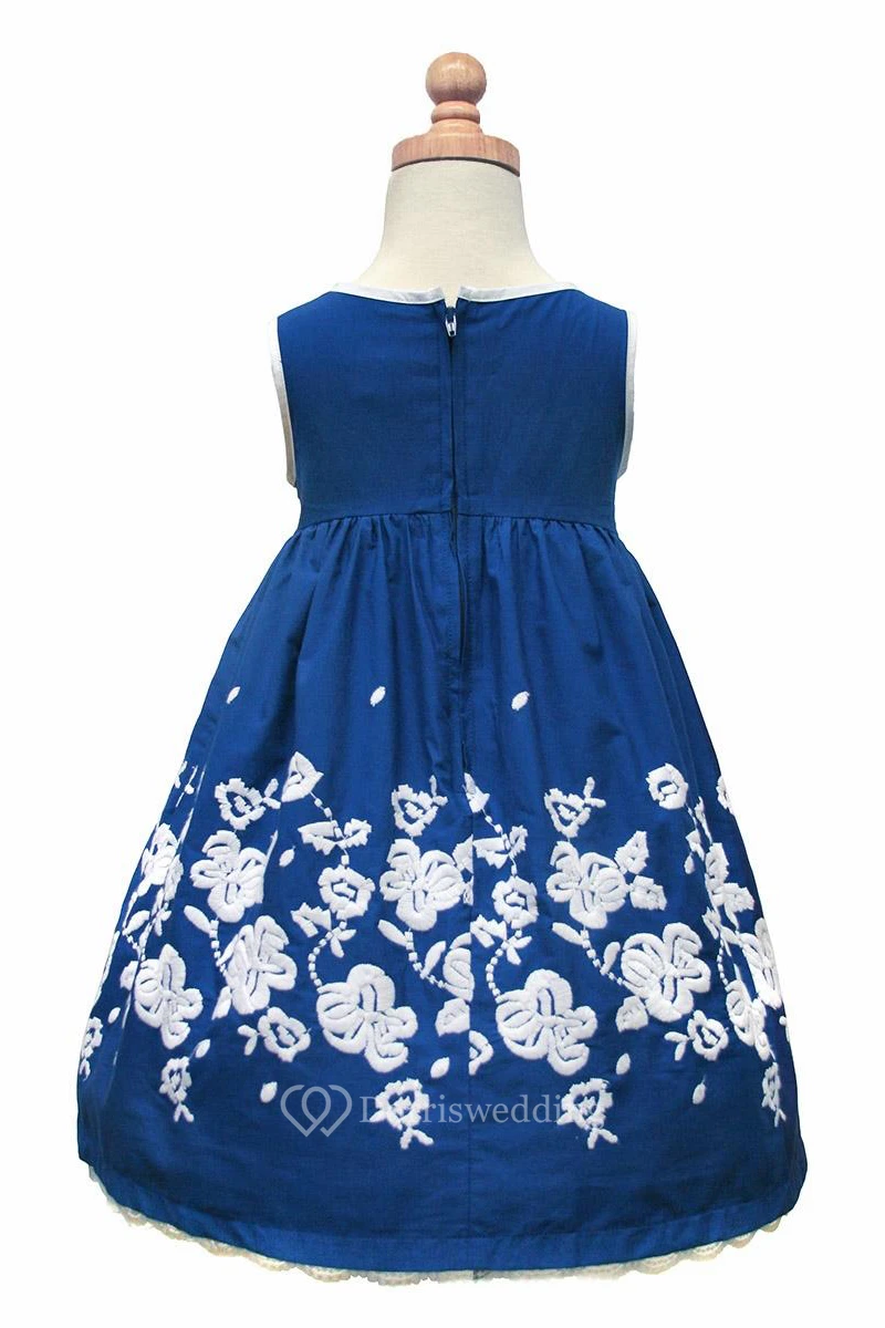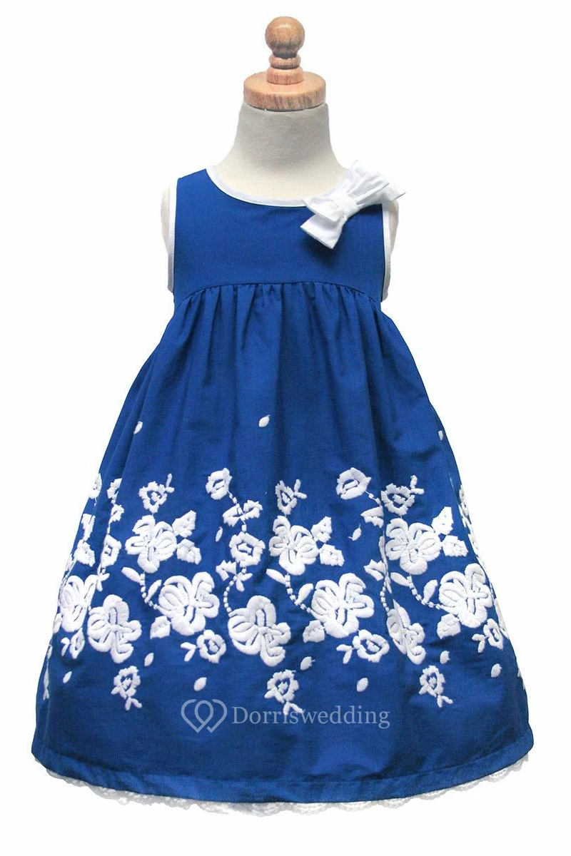 Embroideried Floral Empire Bowed Lace Flower Girl Dress