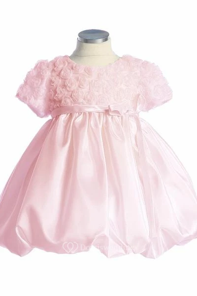 Embroideried Tiered Cap-Sleeve Tulle&Lace Flower Girl Dress